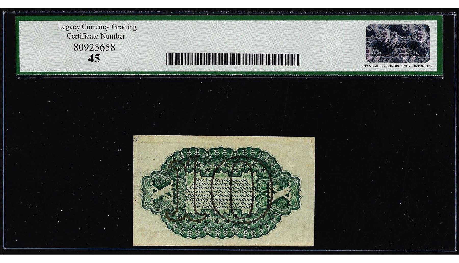 One 1863 Third Issue 10 Cents Fractional Currency Note Fr.1255 Legacy Extremely Fine 45. Legacy Graded.