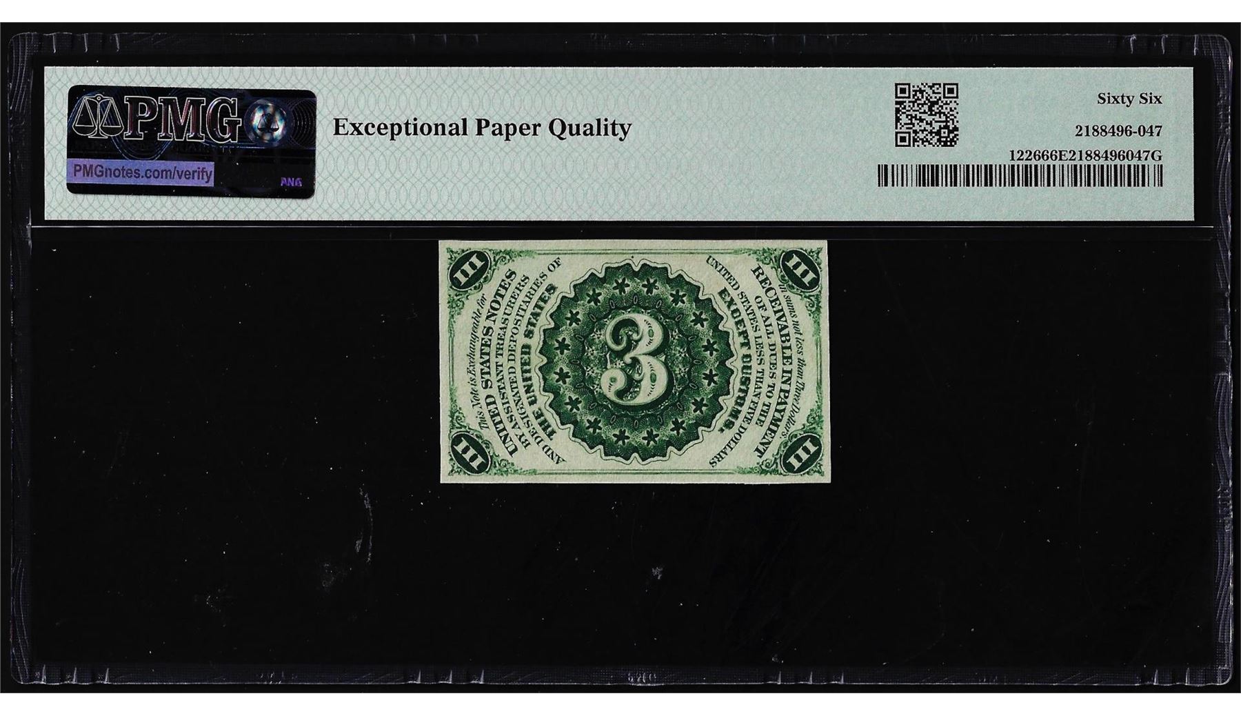 One 1863 Third Issue 3 Cents Fractional Currency Note Fr.1226 PMG Gem Uncirculated 66EPQ. PMG Certified.