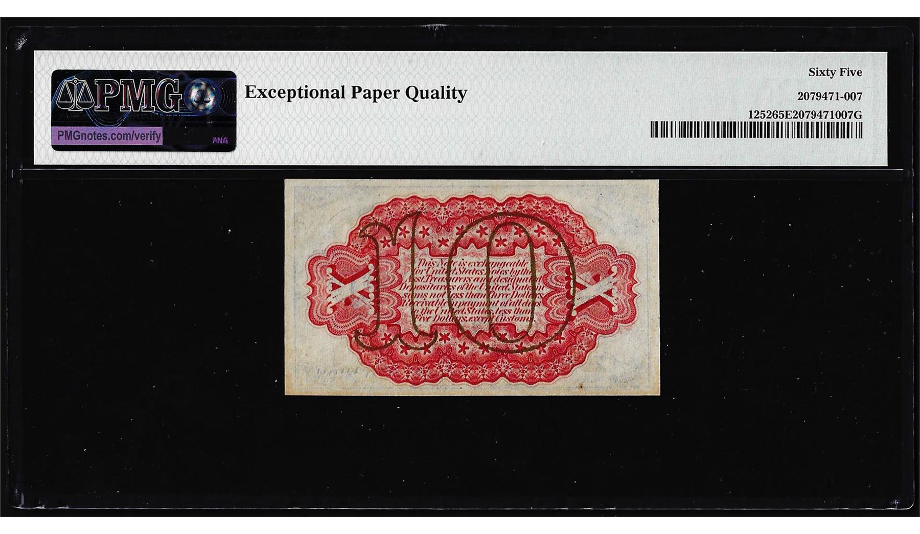 One 1863 Third Issue Ten Cents Fractional Currency Note Fr.1252 PMG Gem Uncirculated 65EPQ. PMG Certified.
