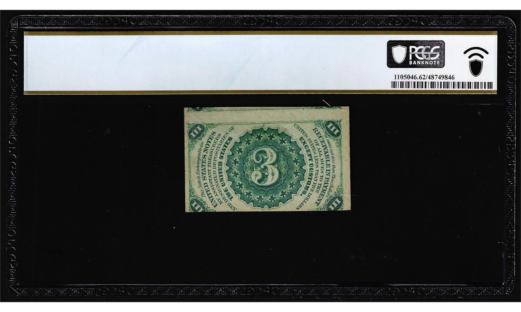 1863 Third Issue Three Cents Fractional Currency Note Fr.1226 PCGS Uncirculated 62
