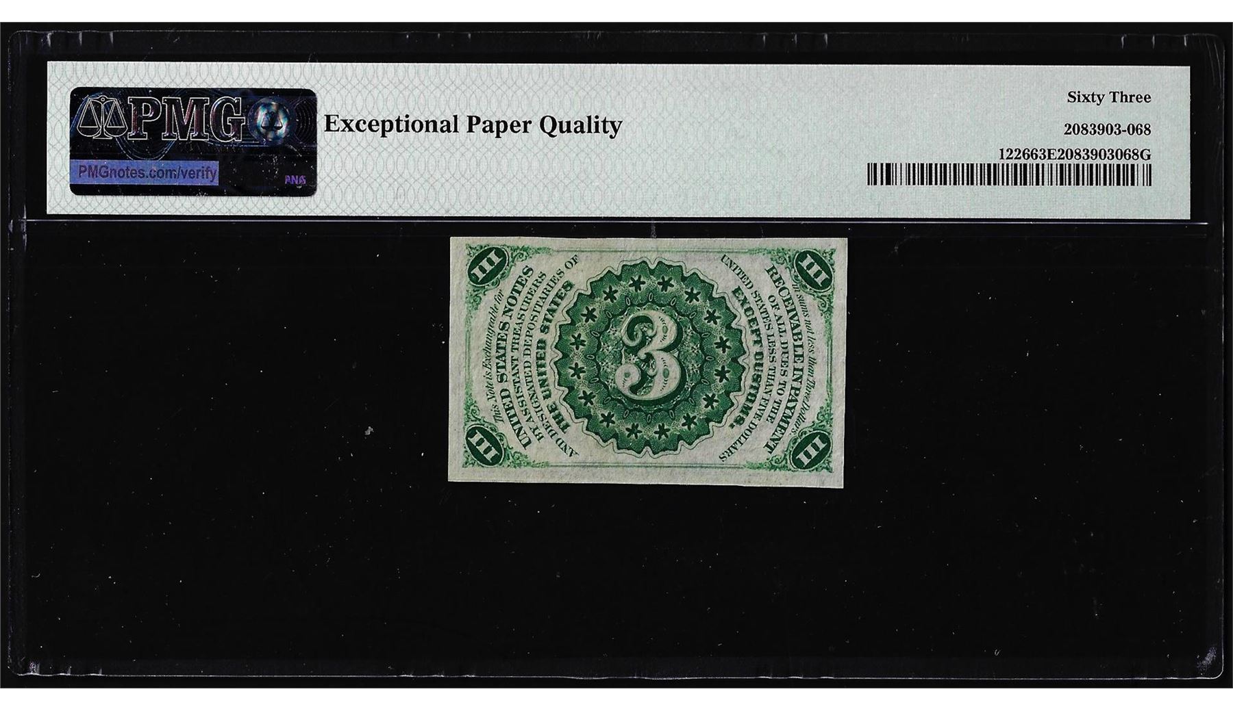 1863 Third Issue Three Cents Fractional Note Fr.1226 PMG Choice Uncirculated 63EPQ