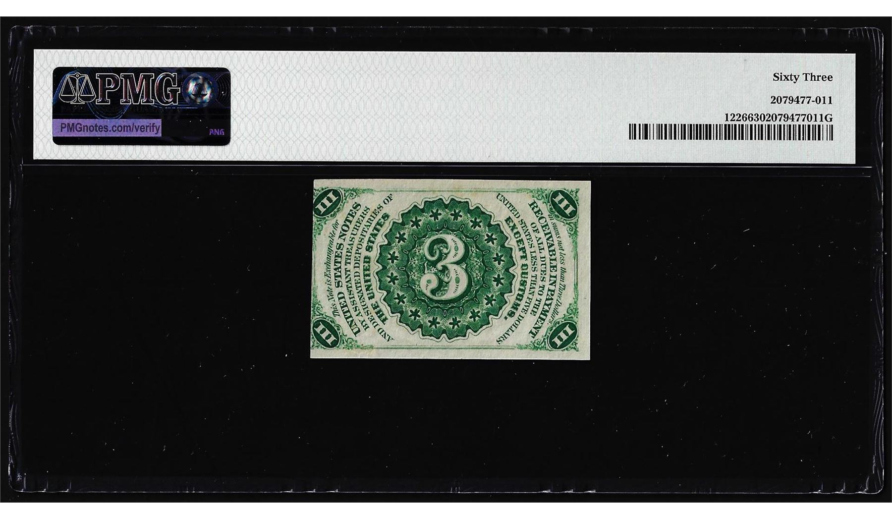 1863 Third Issue Three Cents Fractional Note Fr.1226 PMG Choice Uncirculated 63