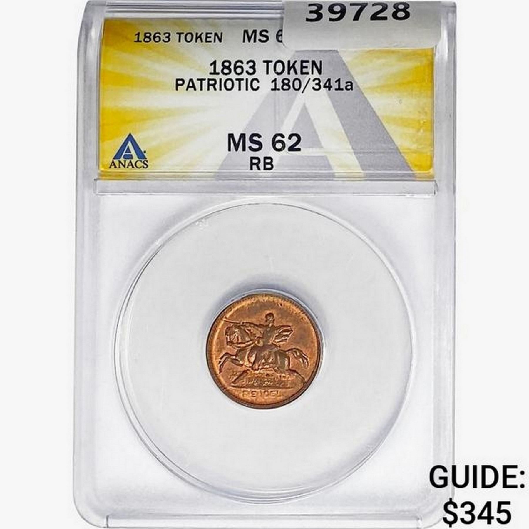 1863 Token Patriotic 180/341a ANACS MS62 RB
