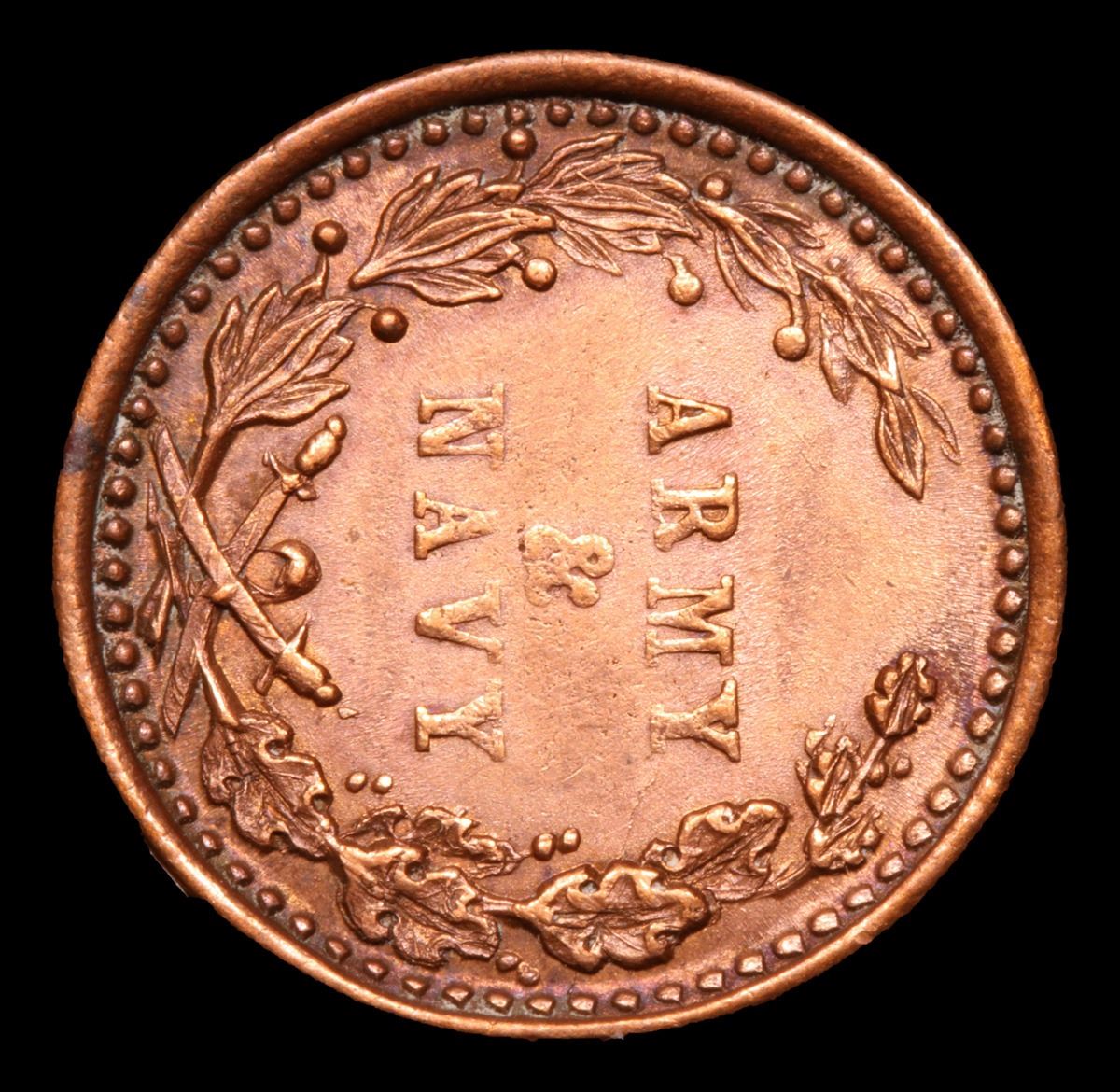 1863 Turban Liberty 90 cw rot die, Army & Navy United We Stand Divide We Fall; Wonderful Patina Civil War Token 1c Grades Choice AU/BU Slider.