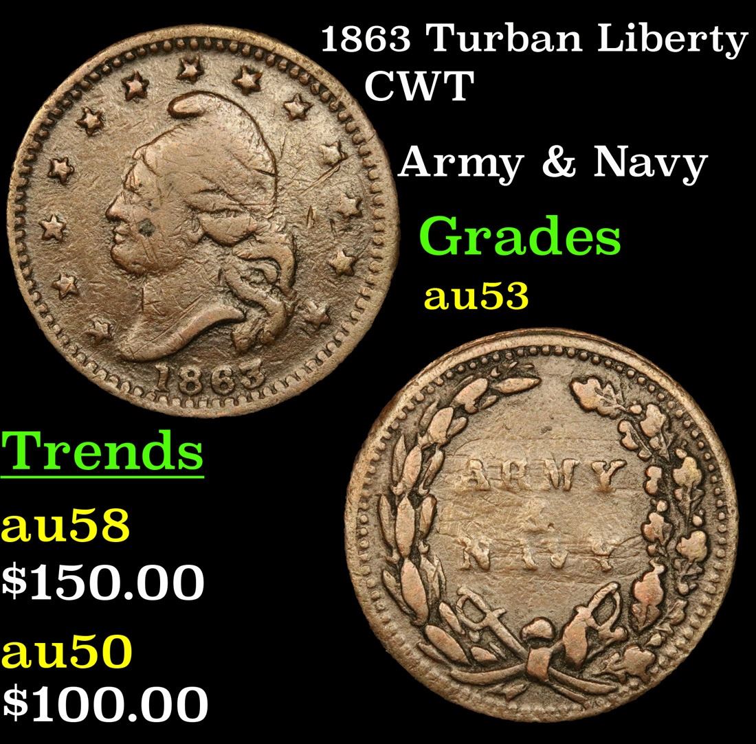 1863 Turban Liberty Army & Navy . Civil War Token 1c Grades Select AU.