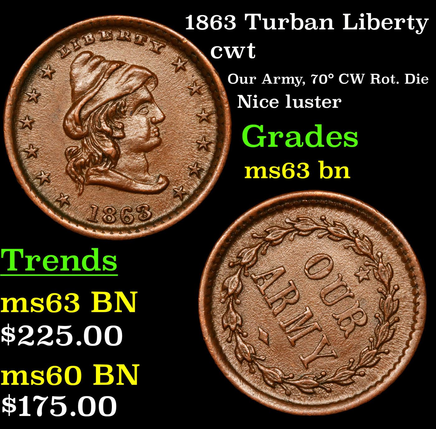 1863 Turban Liberty Civil War Token 1c Grades Select Unc BN.