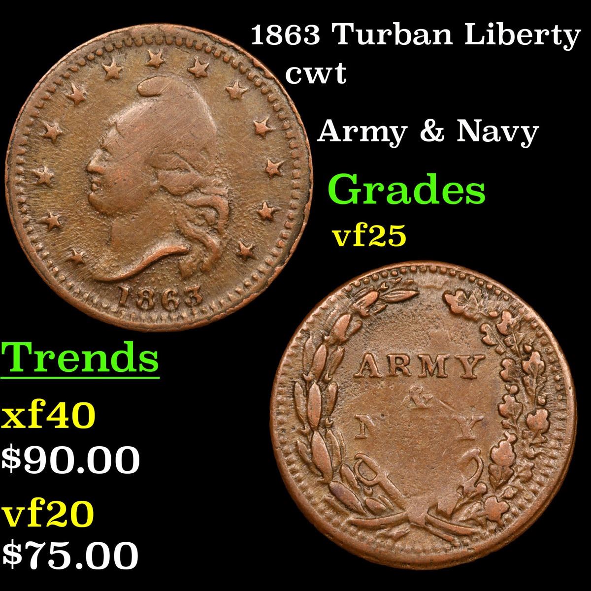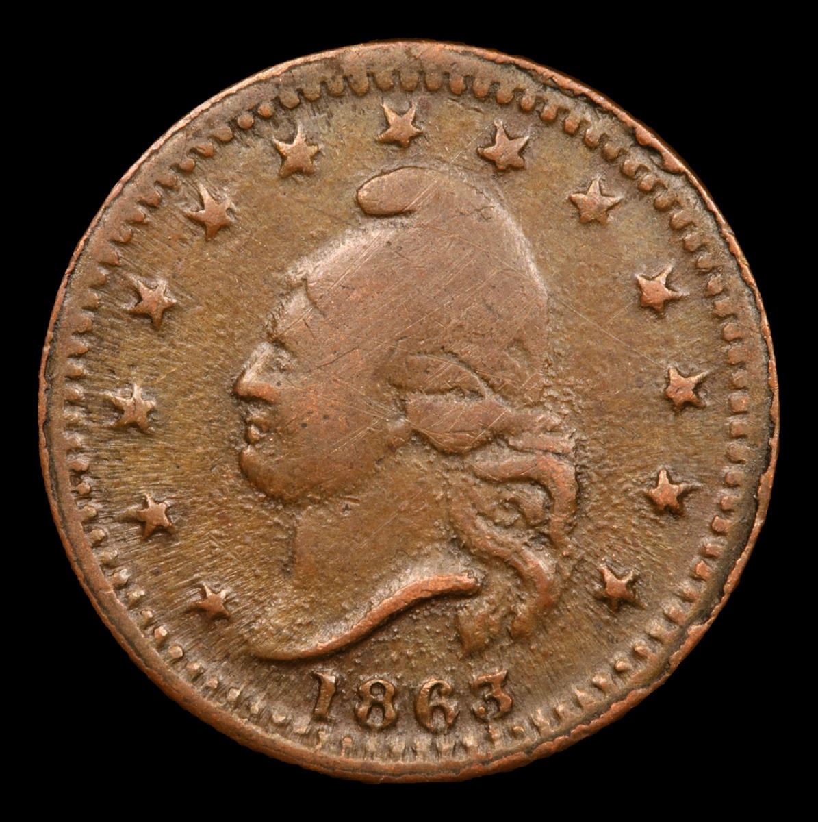1863 Turban Liberty Civil War Token 1c Grades vf+.
