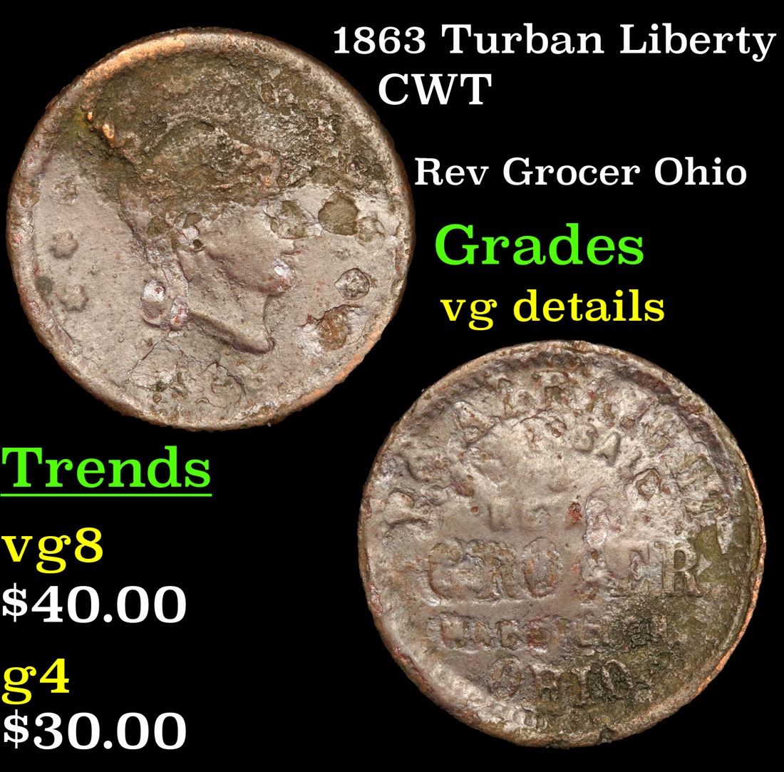 1863 Turban Liberty Rev Grocer Ohio . Civil War Token 1c Grades vg details.