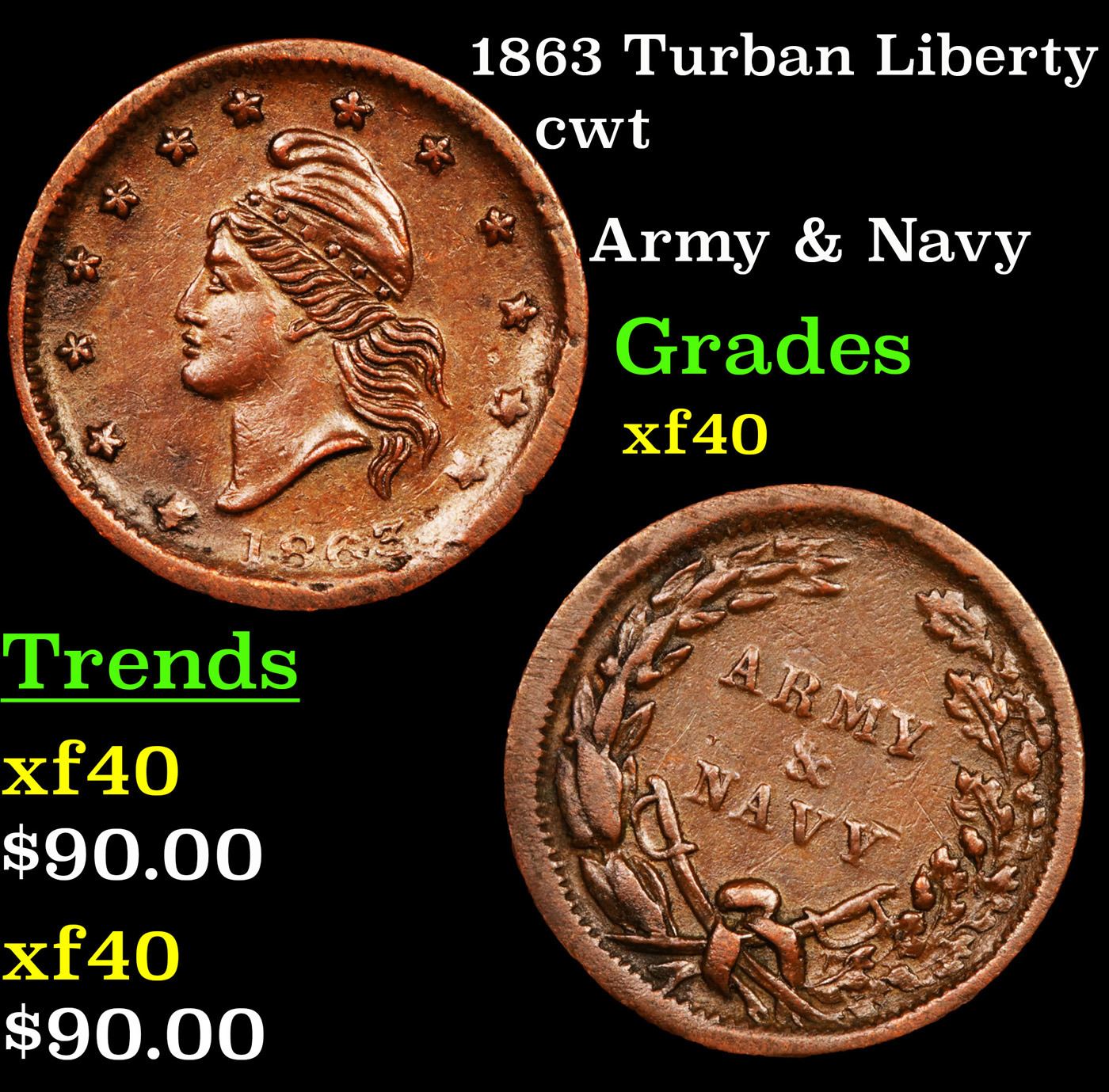 1863 Turban Liberty Civil War Token 1c Grades xf.