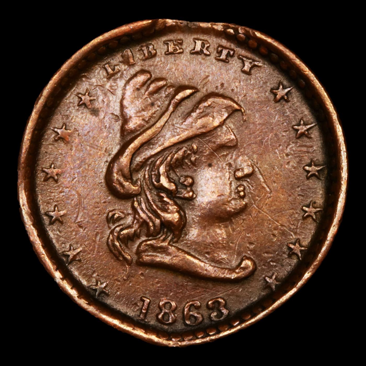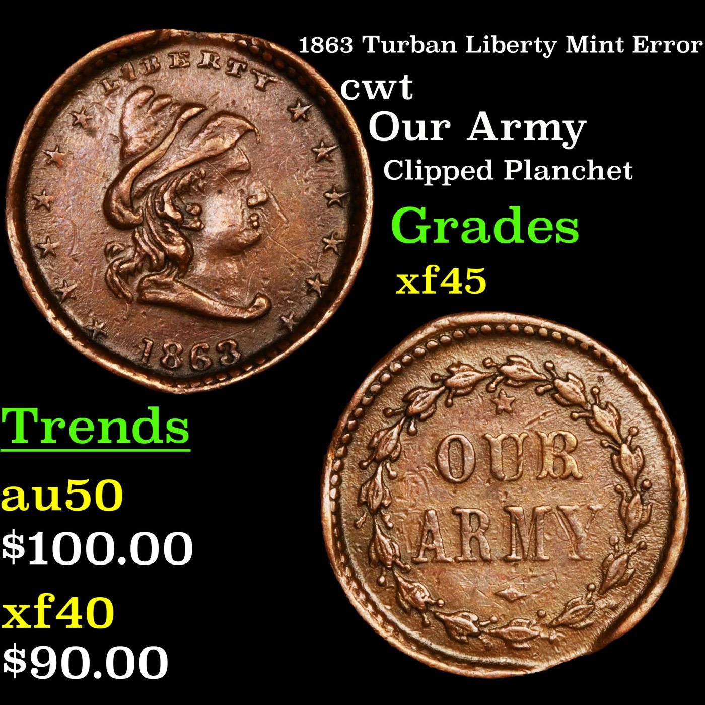 1863 Turban Liberty Mint Error Civil War Token 1c Grades xf+.