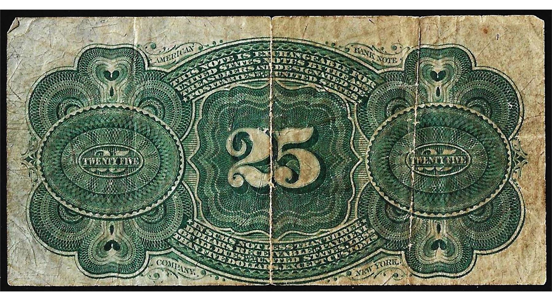 One 1863 Twenty Five Cents 4th Issue Fractional Currency Note.