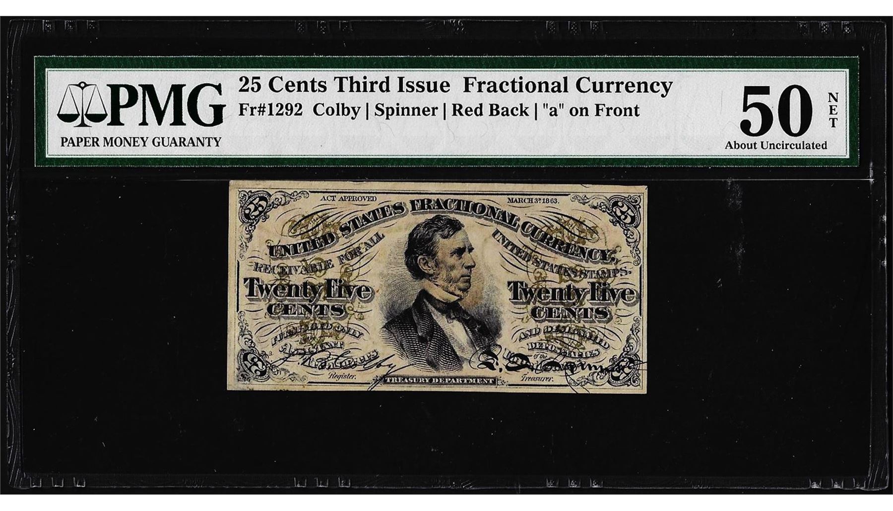 1863 Twenty Five Cents Third Issue Fractional Note PMG About Uncirculated 50 Net