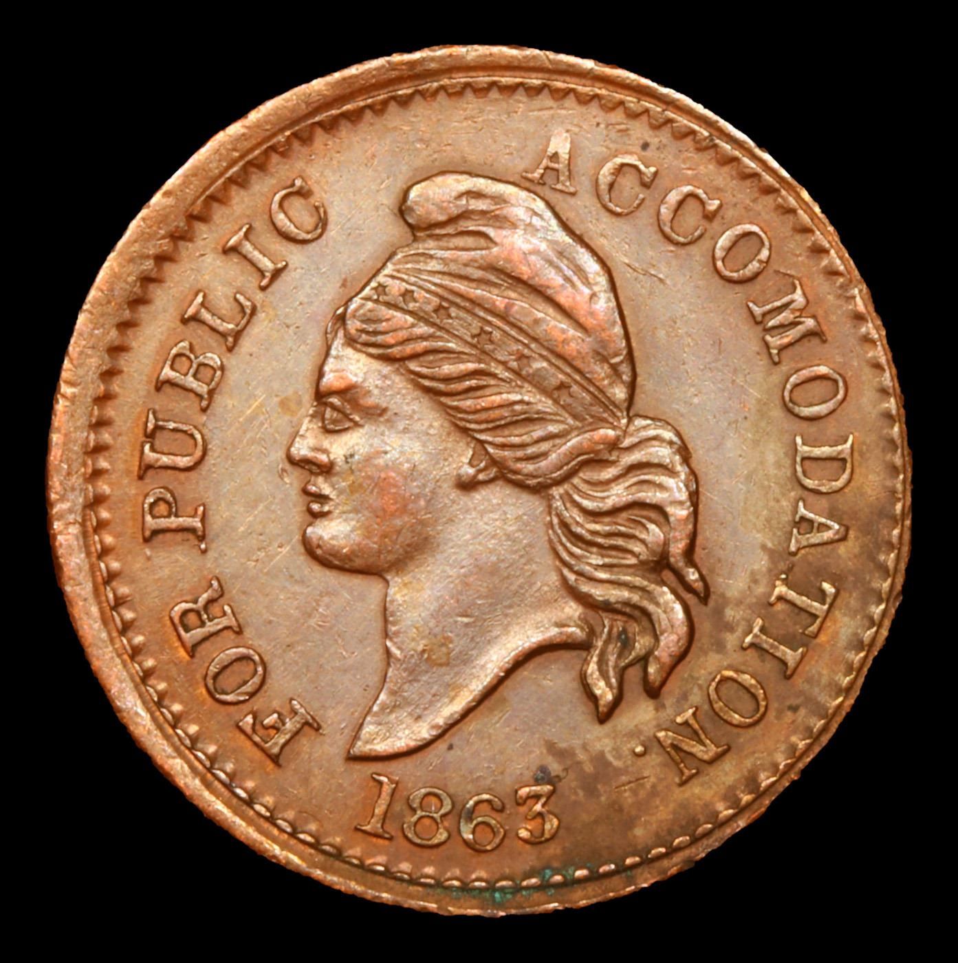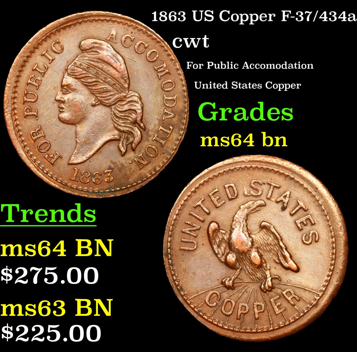 1863 US Copper F-37/434a Civil War Token 1c Grades Choice Unc BN.