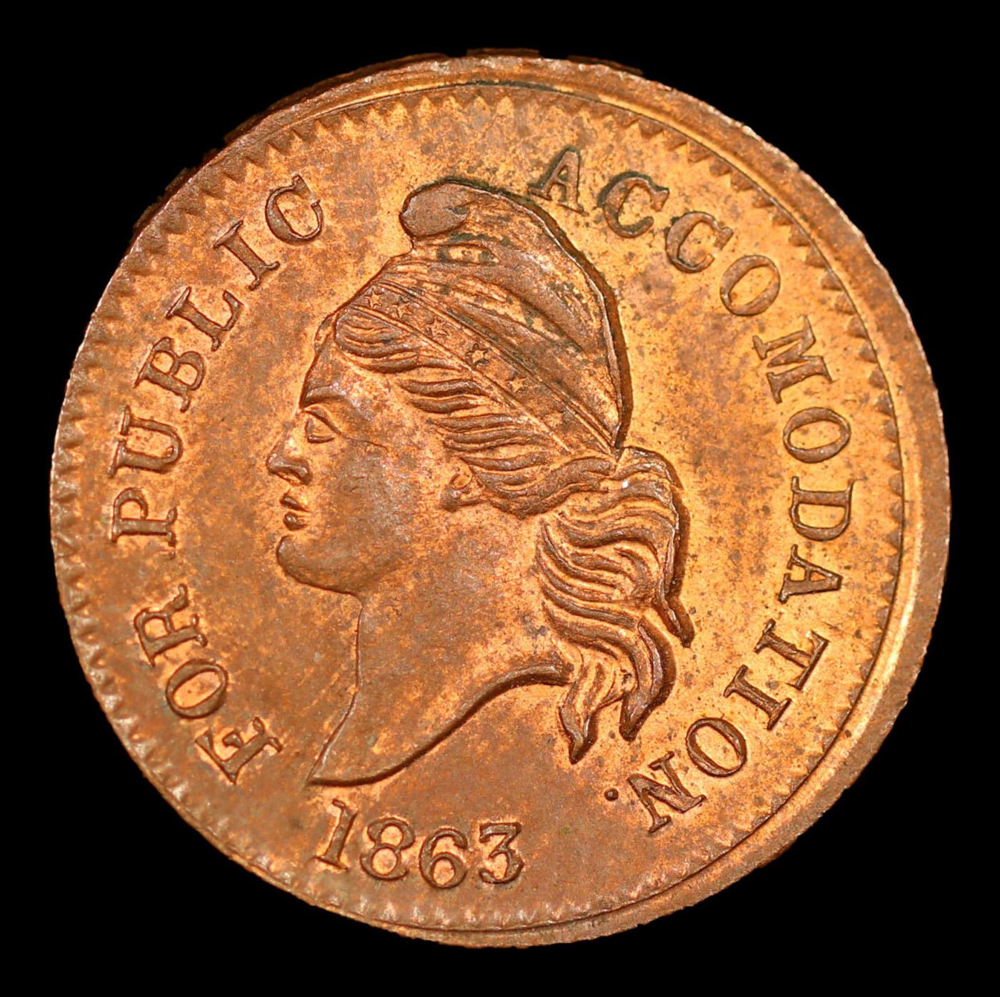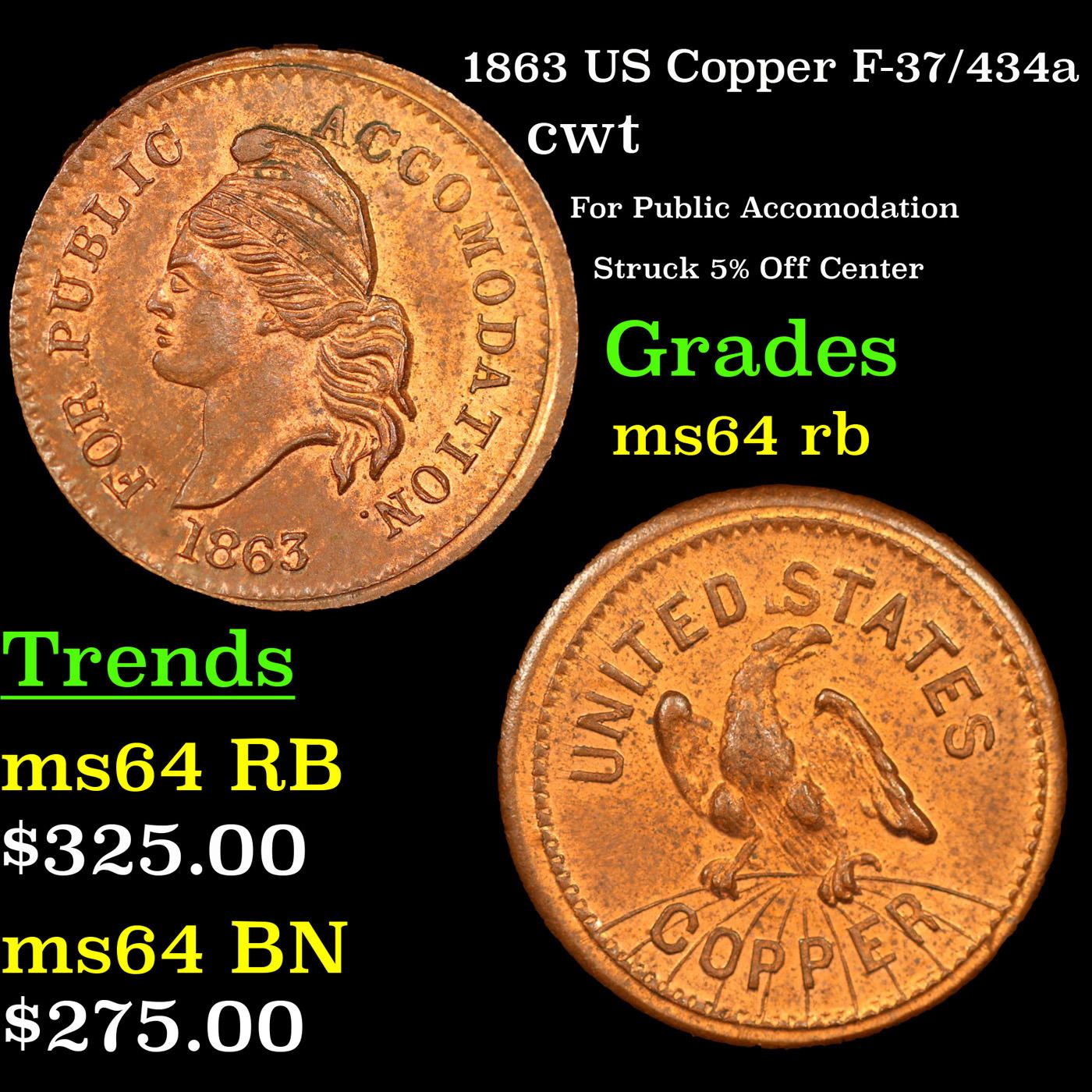 1863 US Copper F-37/434a Civil War Token 1c Grades Choice Unc RB.