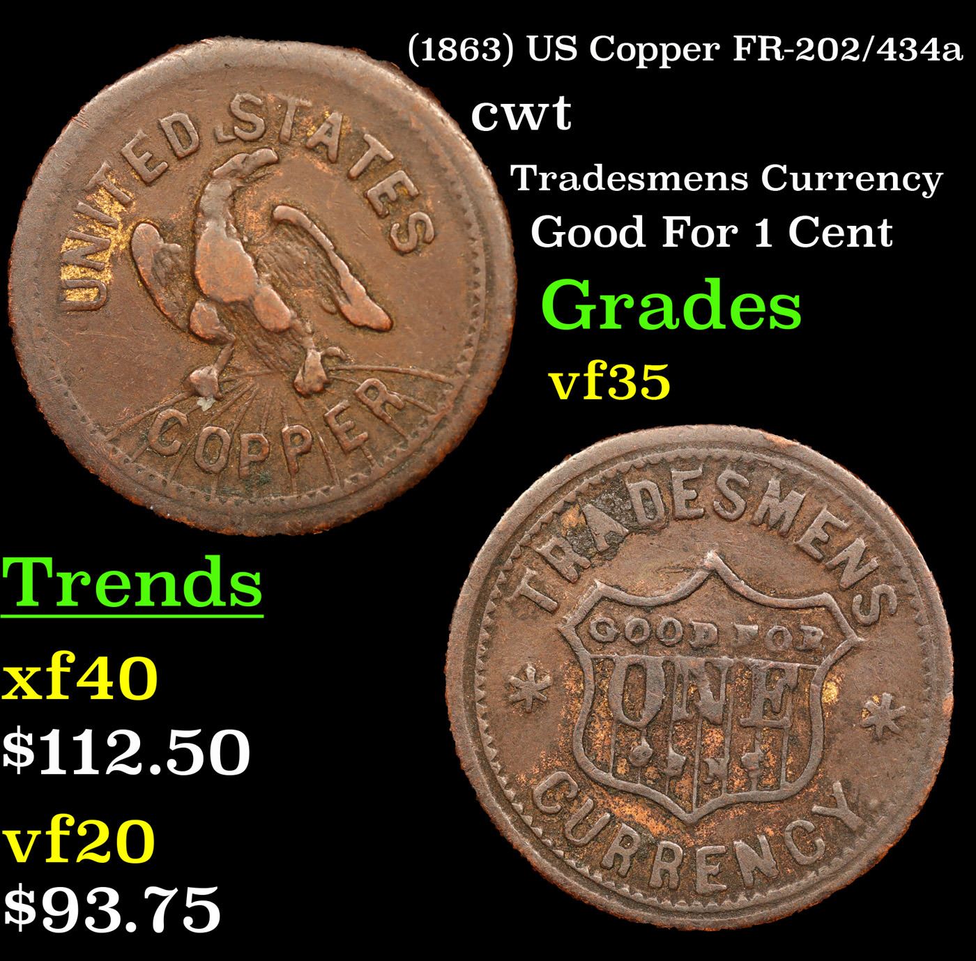 (1863) US Copper FR-202/434a Civil War Token 1c Grades vf++.