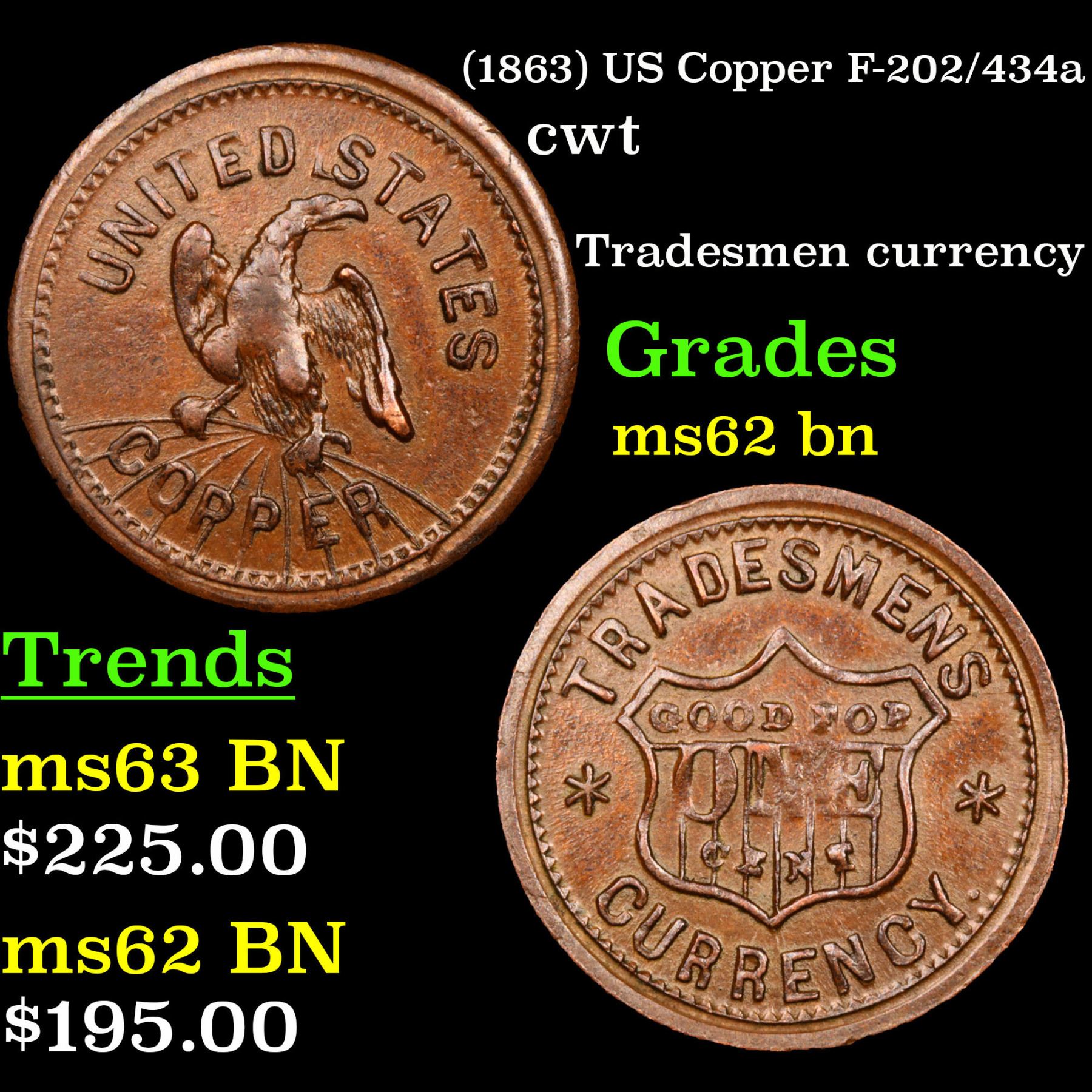 (1863) US Copper F-202/434a Civil War Token 1c Grades Select Unc BN.