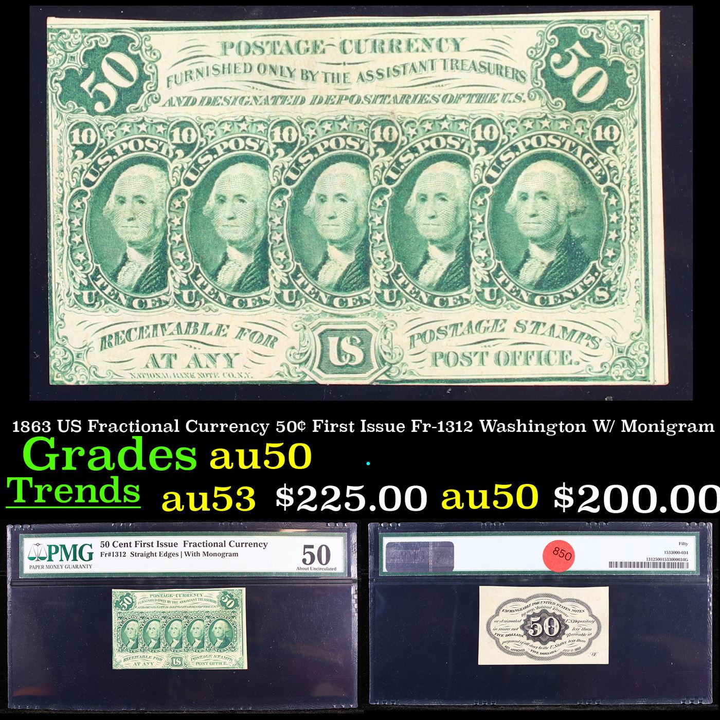 1863 US Fractional Currency 50¢ First Issue Fr-1312 Washington W/ Monigram Graded au50 By PMG
