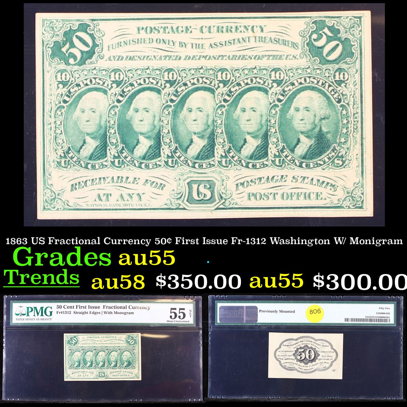 1863 US Fractional Currency 50¢ First Issue Fr-1312 Washington W/ Monigram Graded au55 By PMG