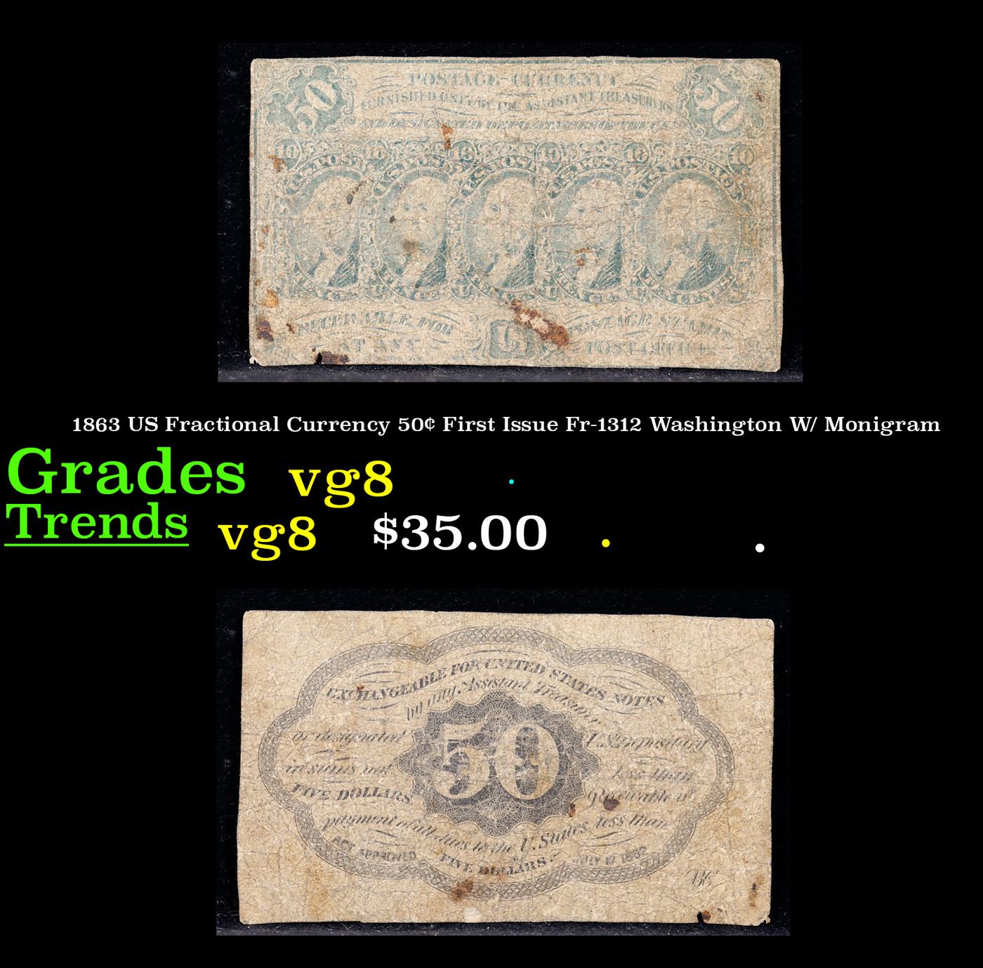 1863 US Fractional Currency 50¢ First Issue Fr-1312 Washington W/ Monigram Grades vg, very good