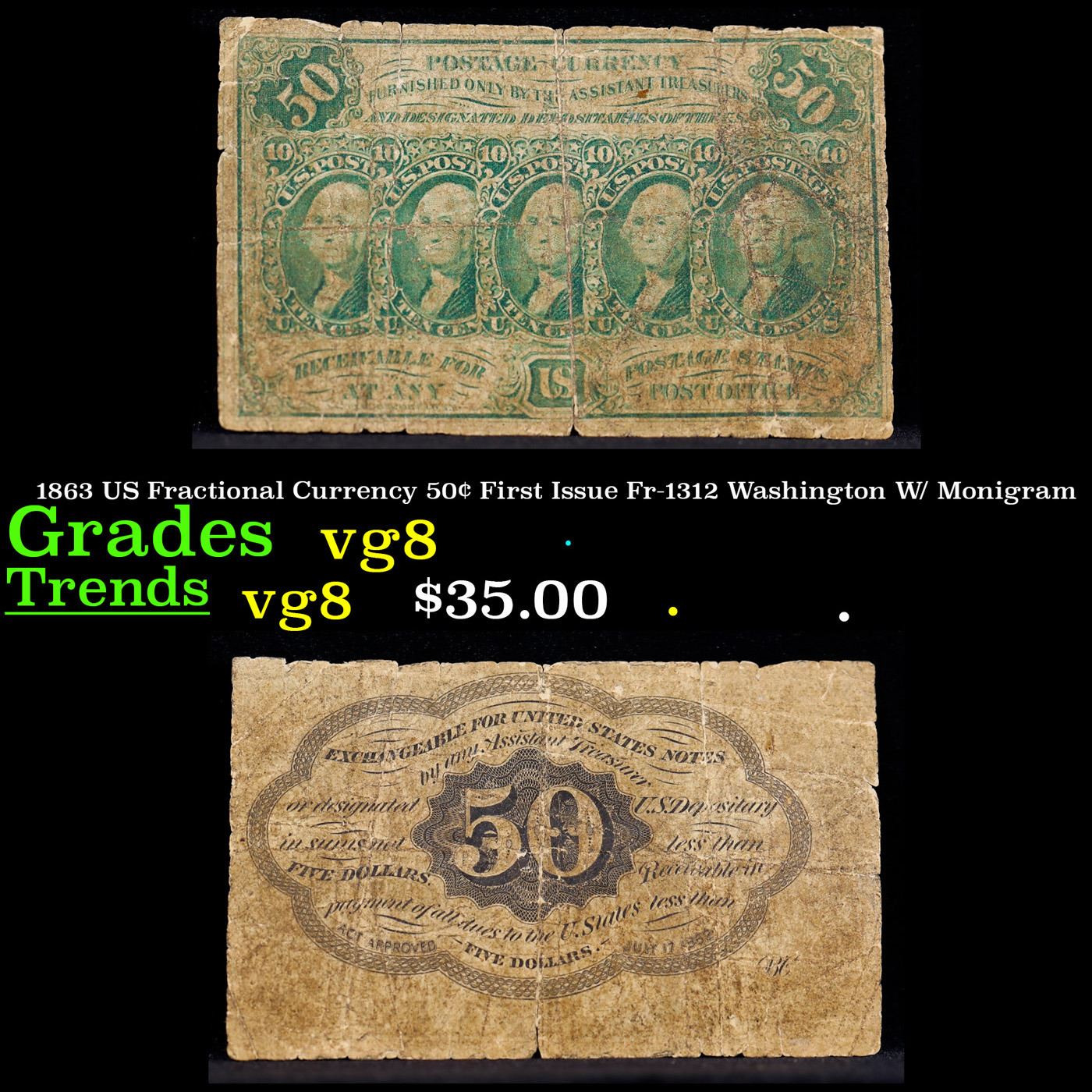 1863 US Fractional Currency 50¢ First Issue Fr-1312 Washington W/ Monigram Grades vg, very good