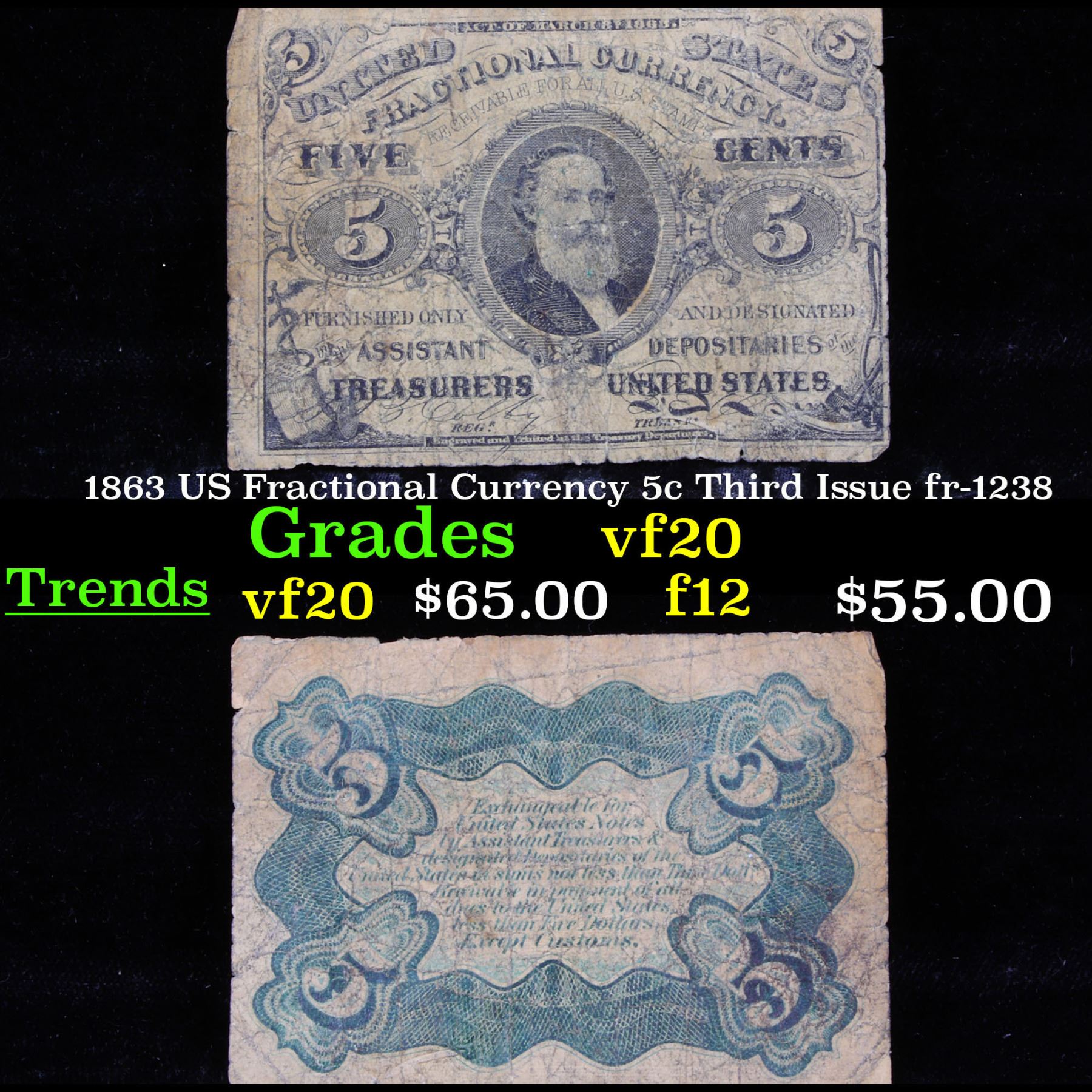 1863 US Fractional Currency 5c Third Issue fr-1238 Grades vf, very fine