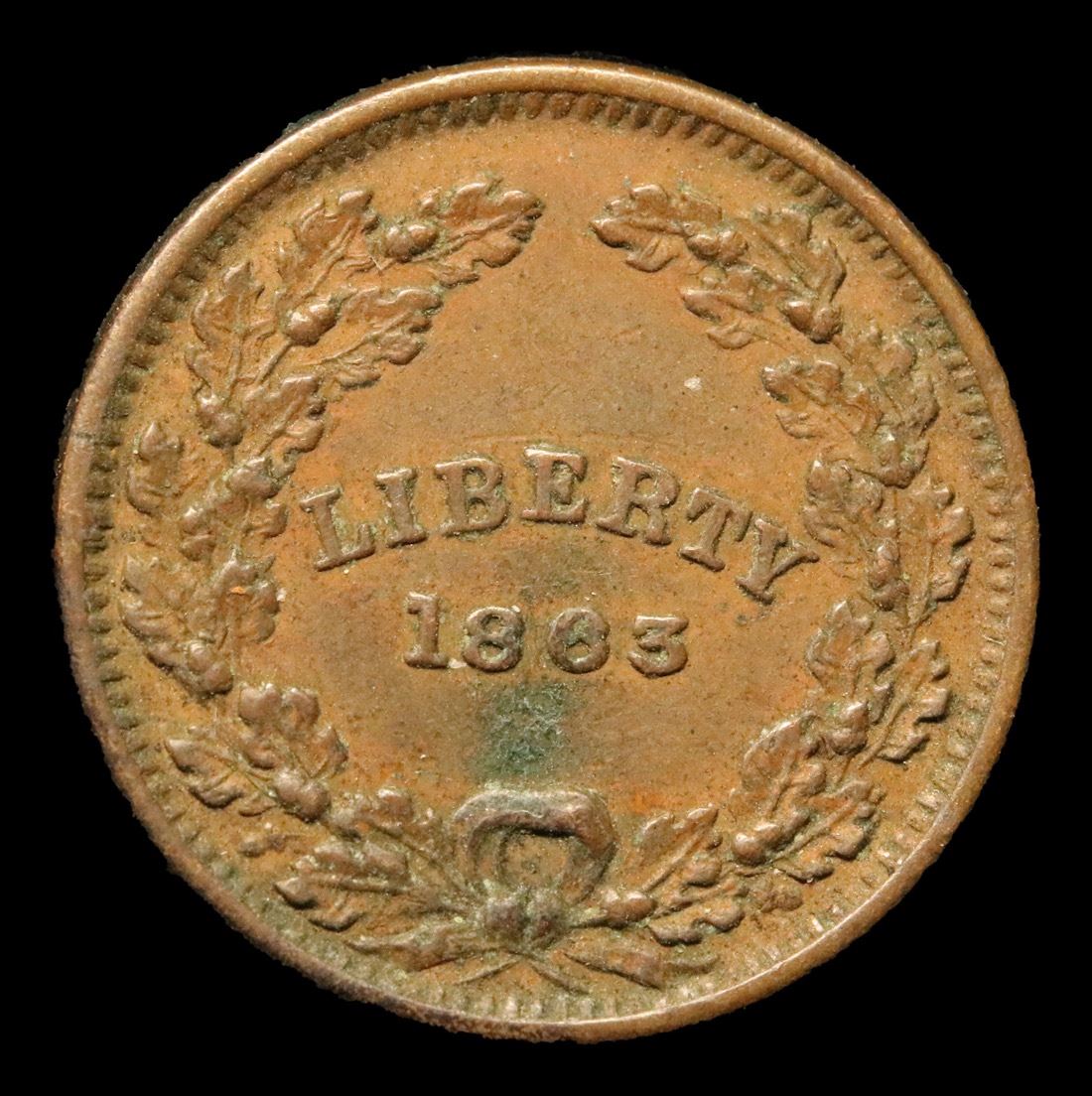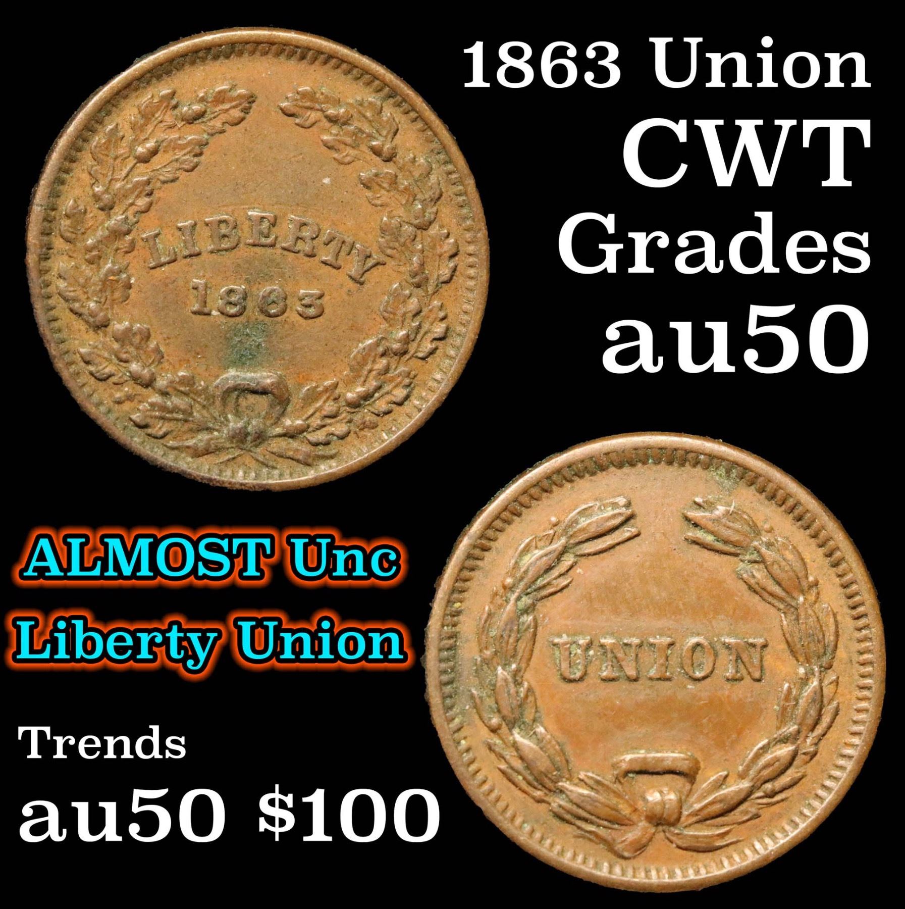 1863 Union Civil War Token 1c Grades AU, Almost Unc.