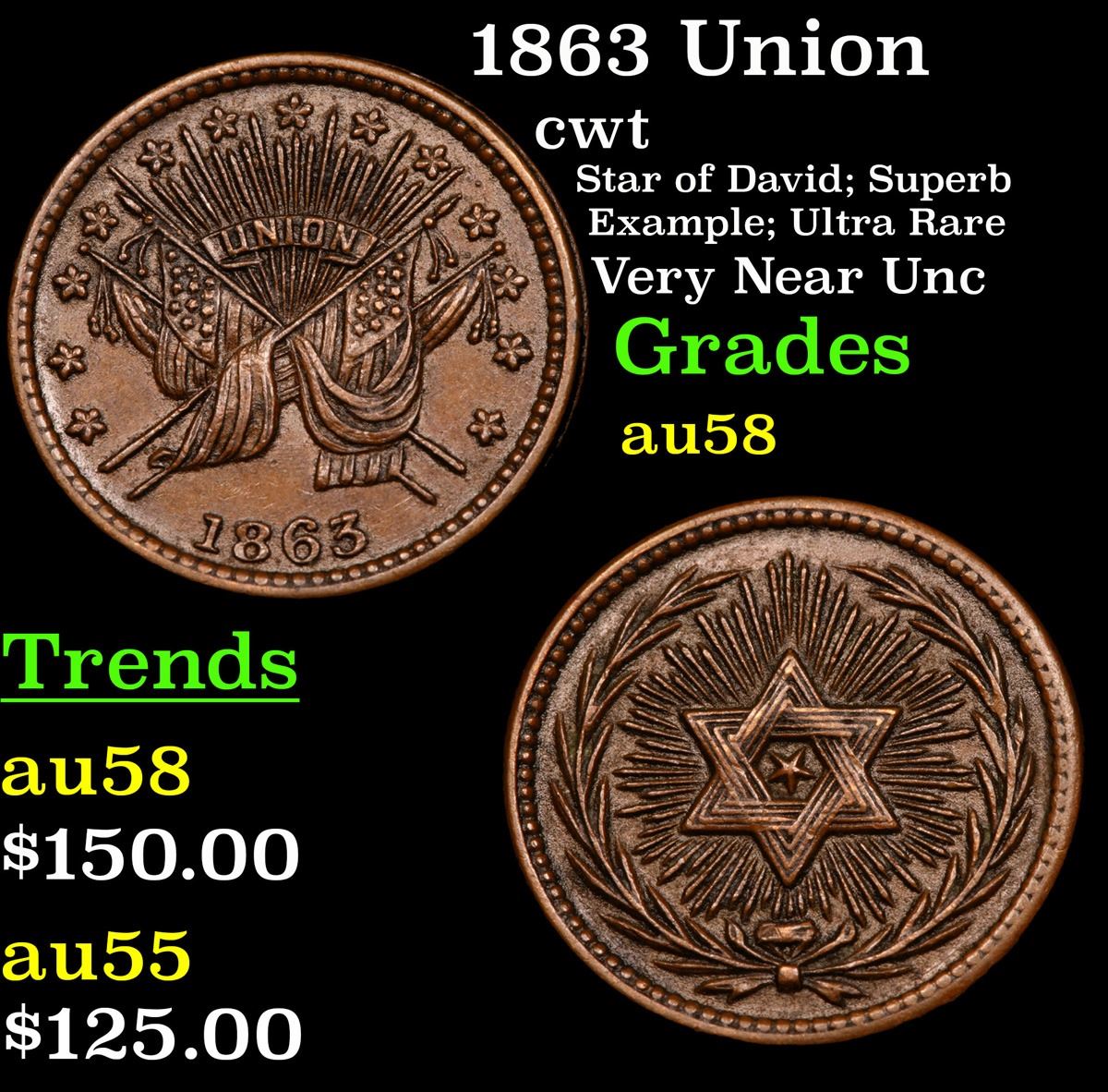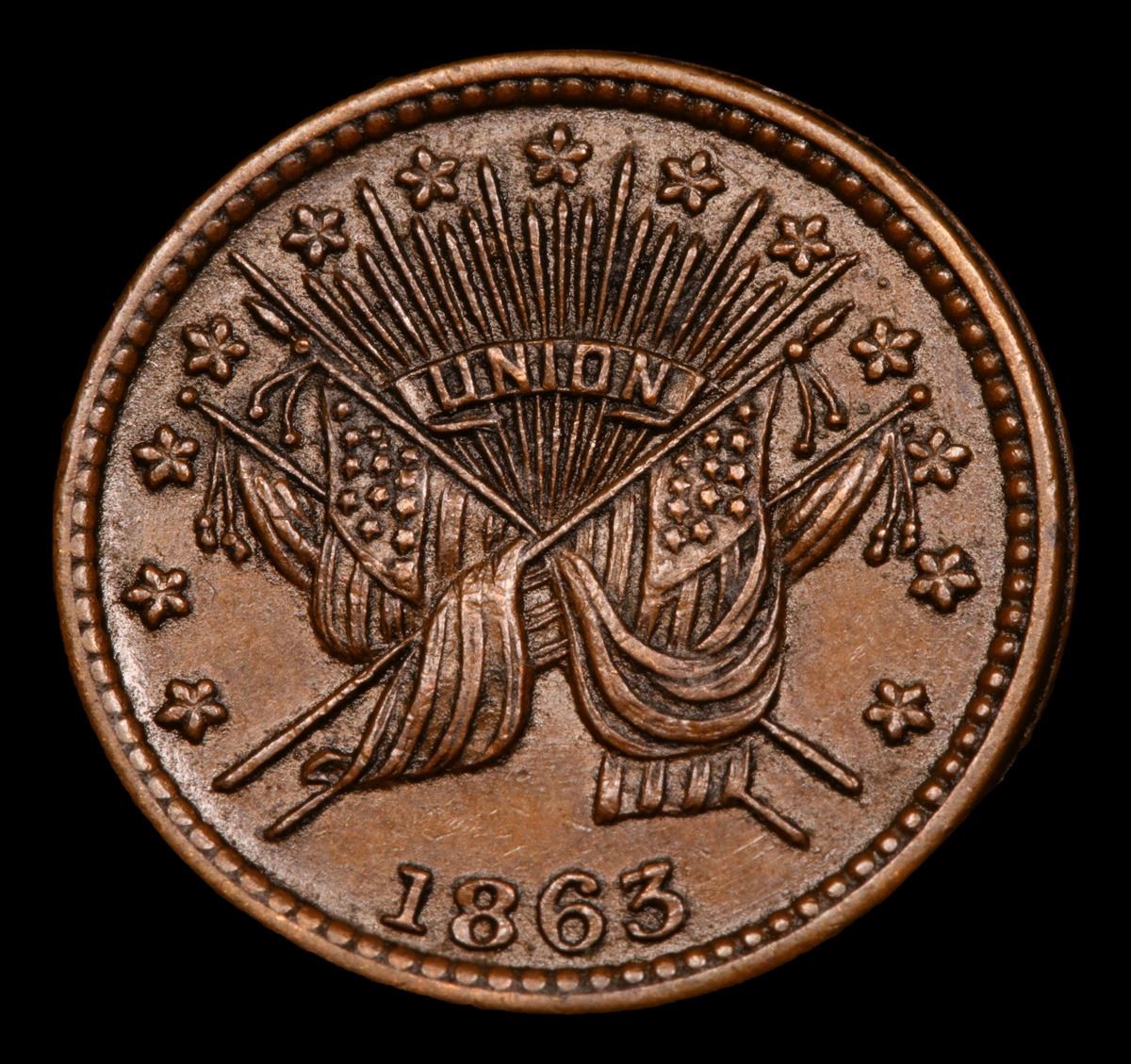 1863 Union Civil War Token 1c Grades Choice AU/BU Slider.