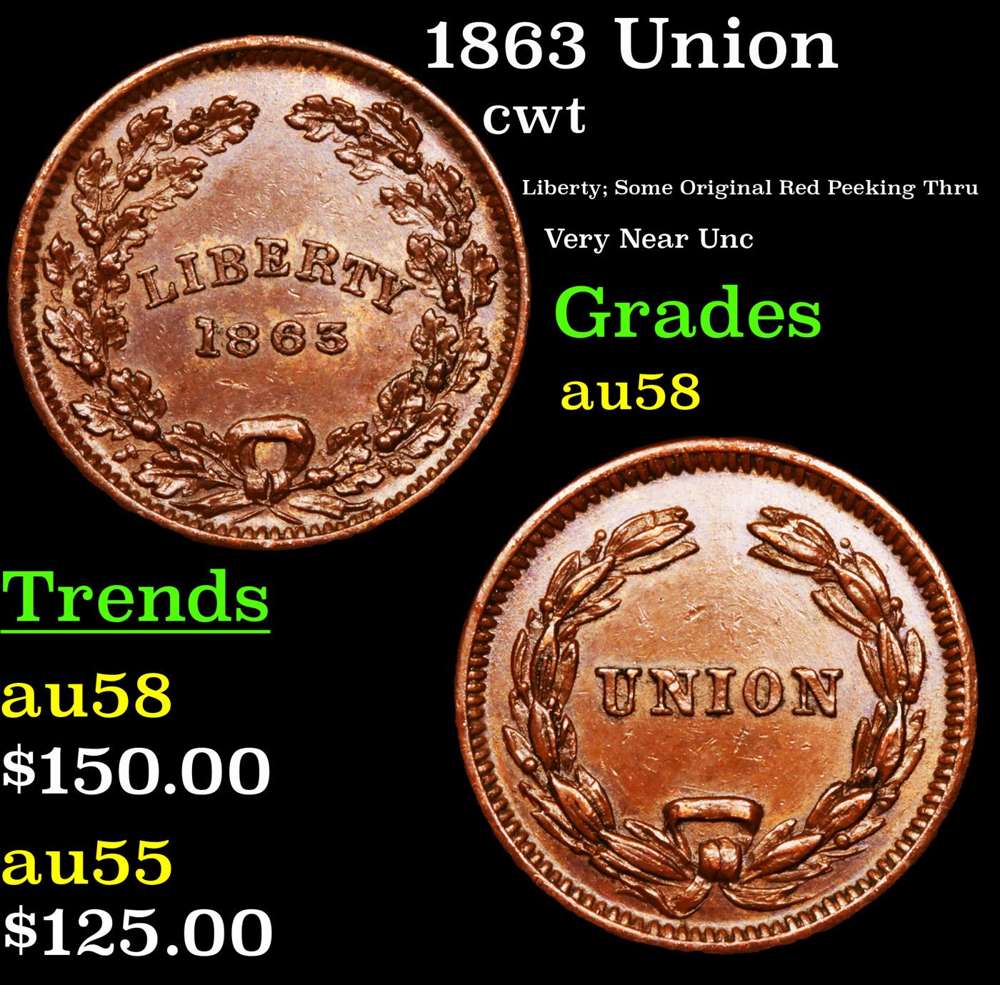 1863 Union Civil War Token 1c Grades Choice AU/BU Slider.