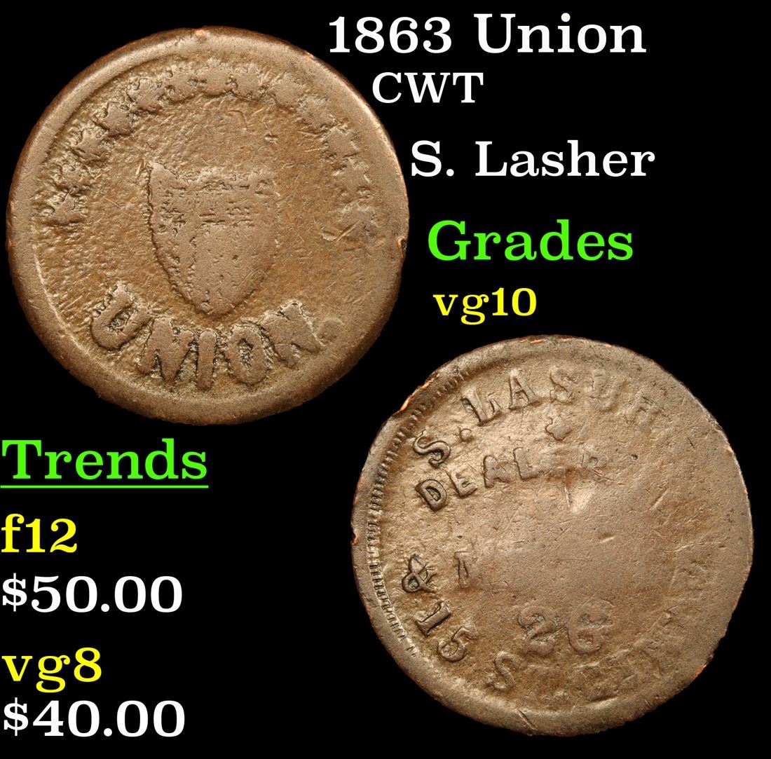 1863 Union S. Lasher . Civil War Token 1c Grades vg+.