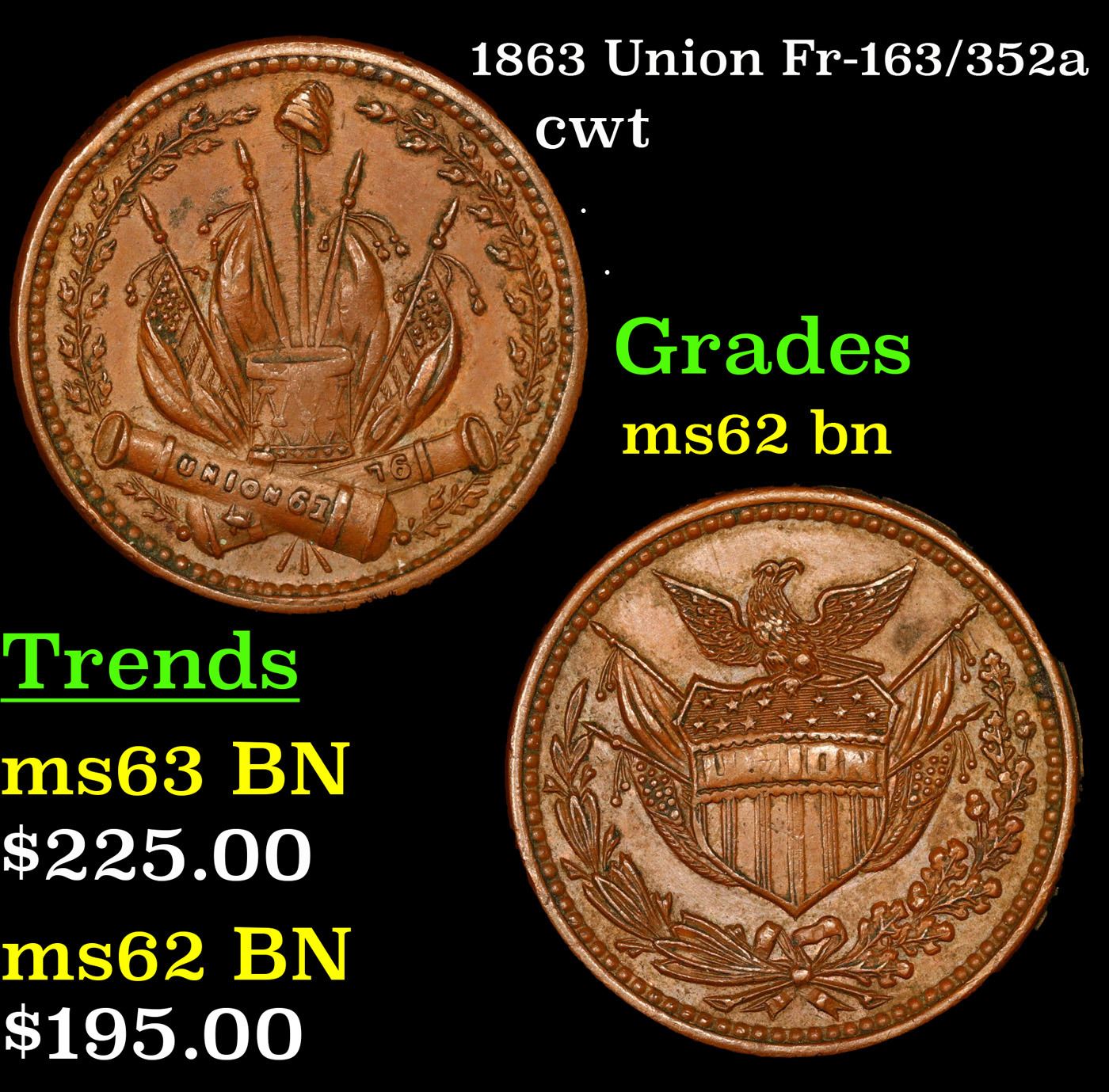 1863 Union Fr-163/352a Civil War Token 1c Grades Select Unc BN.
