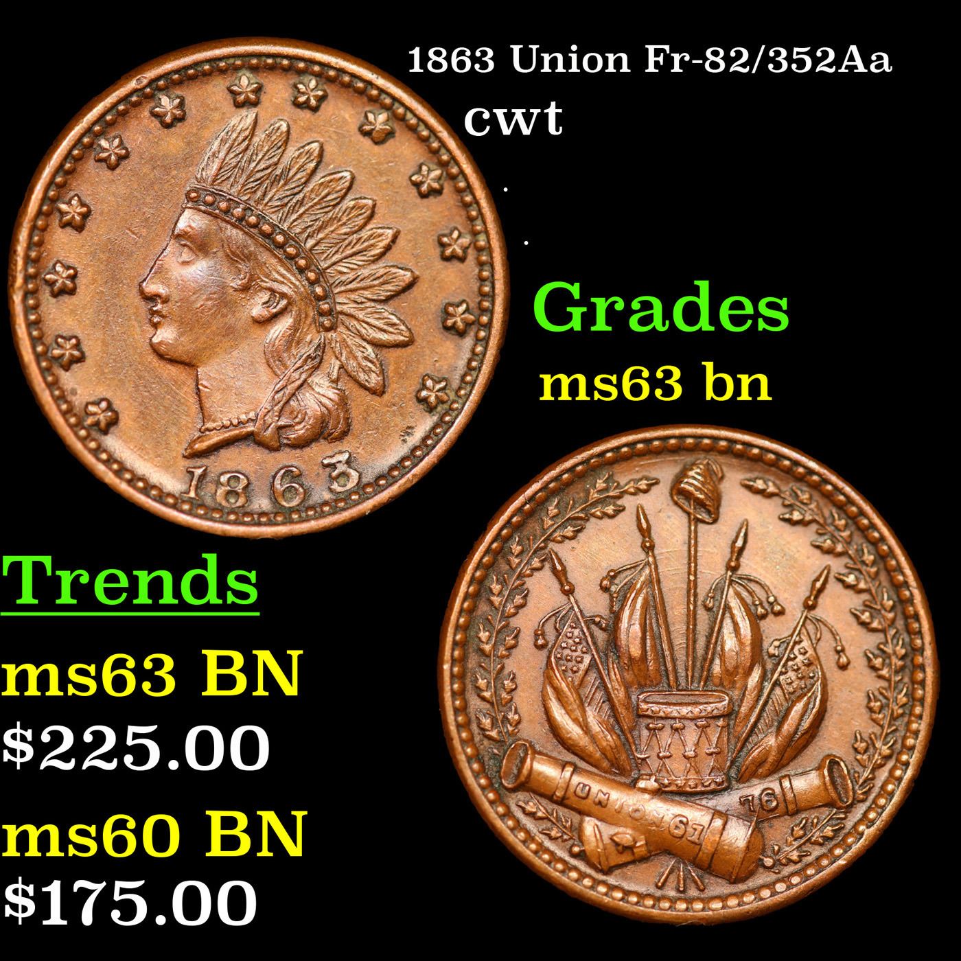 1863 Union Fr-82/352Aa Civil War Token 1c Grades Select Unc BN.