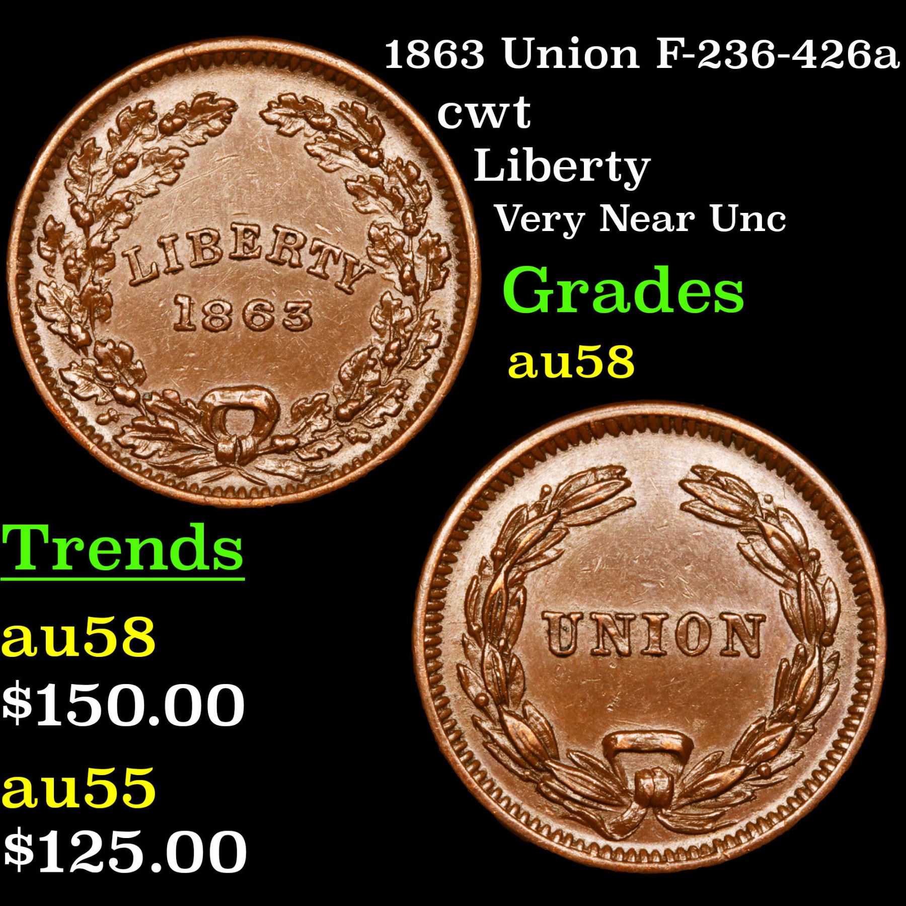 1863 Union F-236-426a Civil War Token 1c Grades Choice AU/BU Slider.
