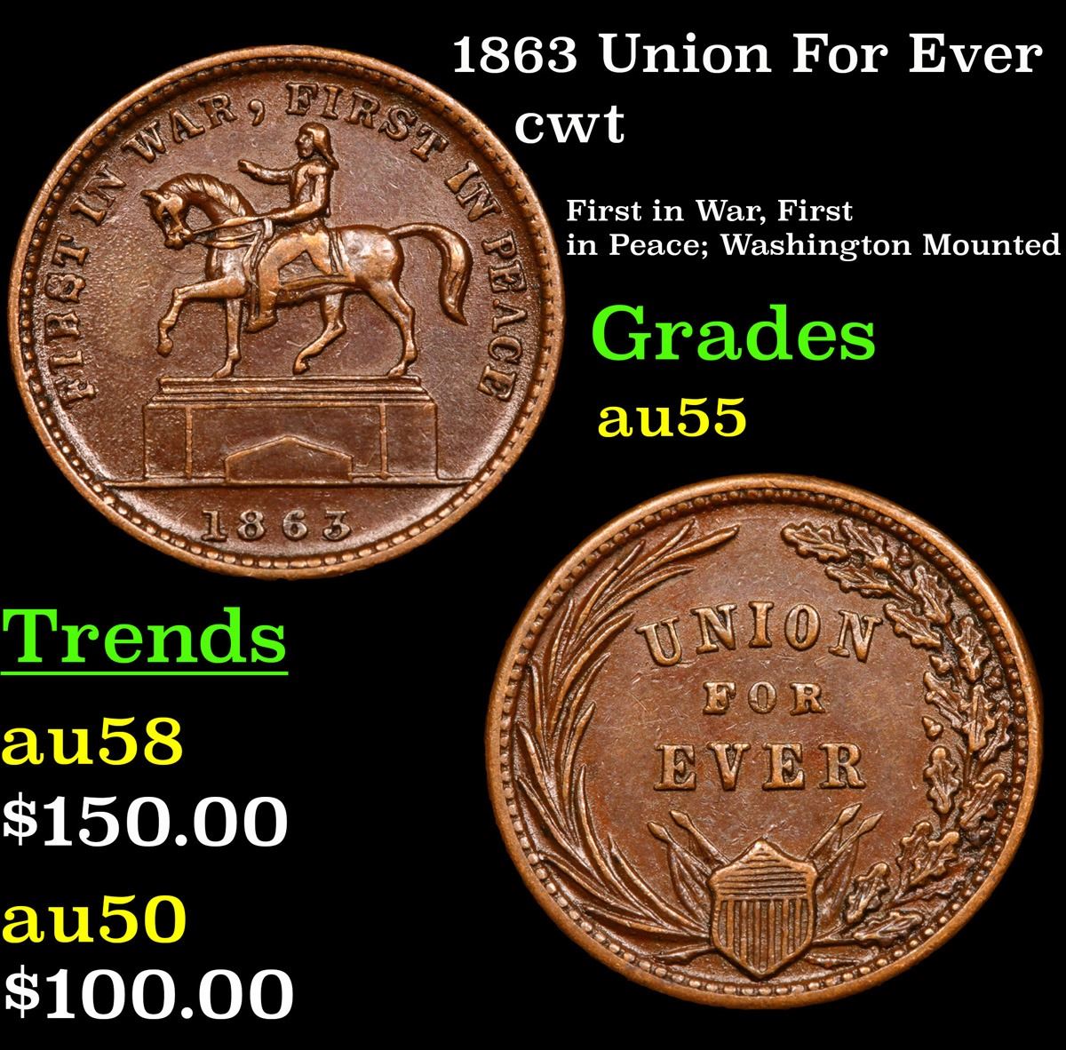 1863 Union For Ever Civil War Token 1c Grades Choice AU.