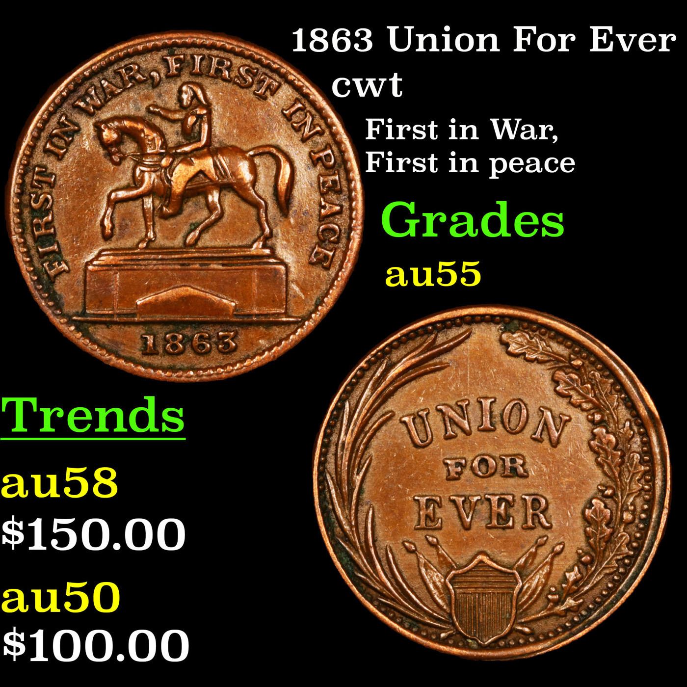 1863 Union For Ever Civil War Token 1c Grades Choice AU.