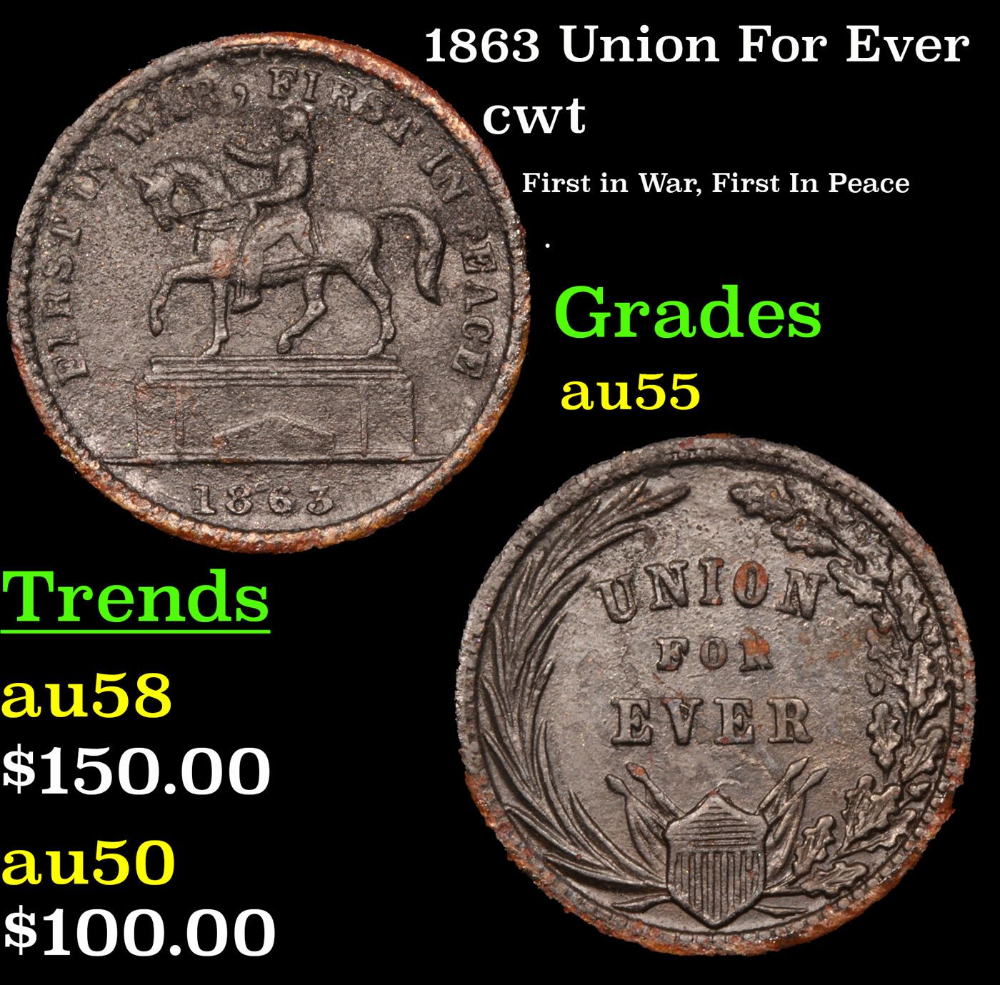 1863 Union For Ever Civil War Token 1c Grades Choice AU.