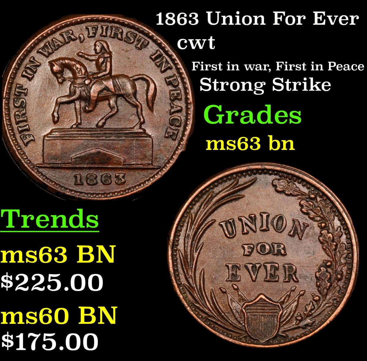 1863 Union For Ever Civil War Token 1c Grades Select Unc BN.