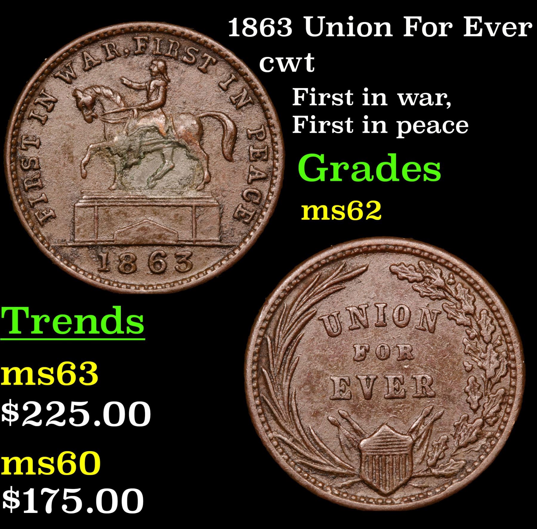 1863 Union For Ever Civil War Token 1c Grades Select Unc.