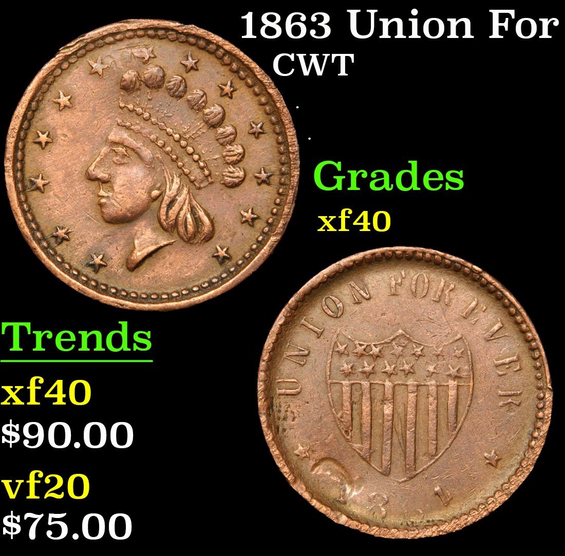 1863 Union For Ever . . Civil War Token 1c Grades xf.