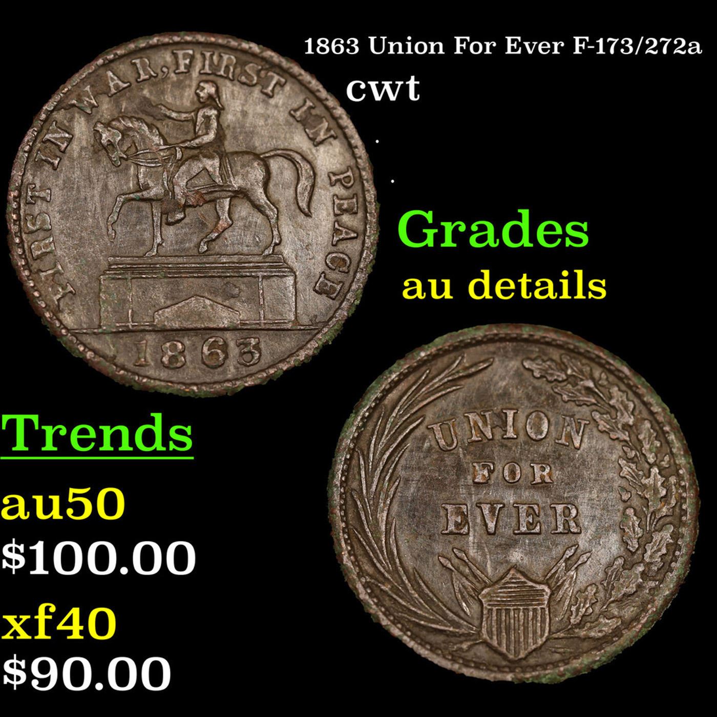 1863 Union For Ever F-173/272a Civil War Token 1c Grades AU Details.