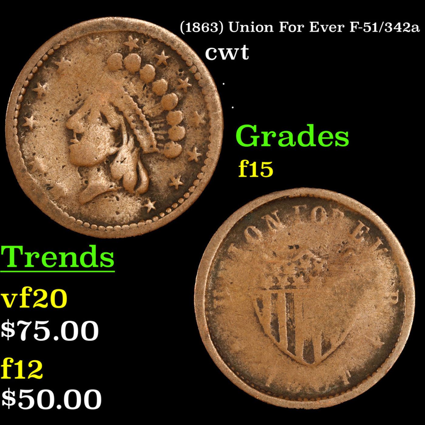 (1863) Union For Ever F-51/342a Civil War Token 1c Grades f+.