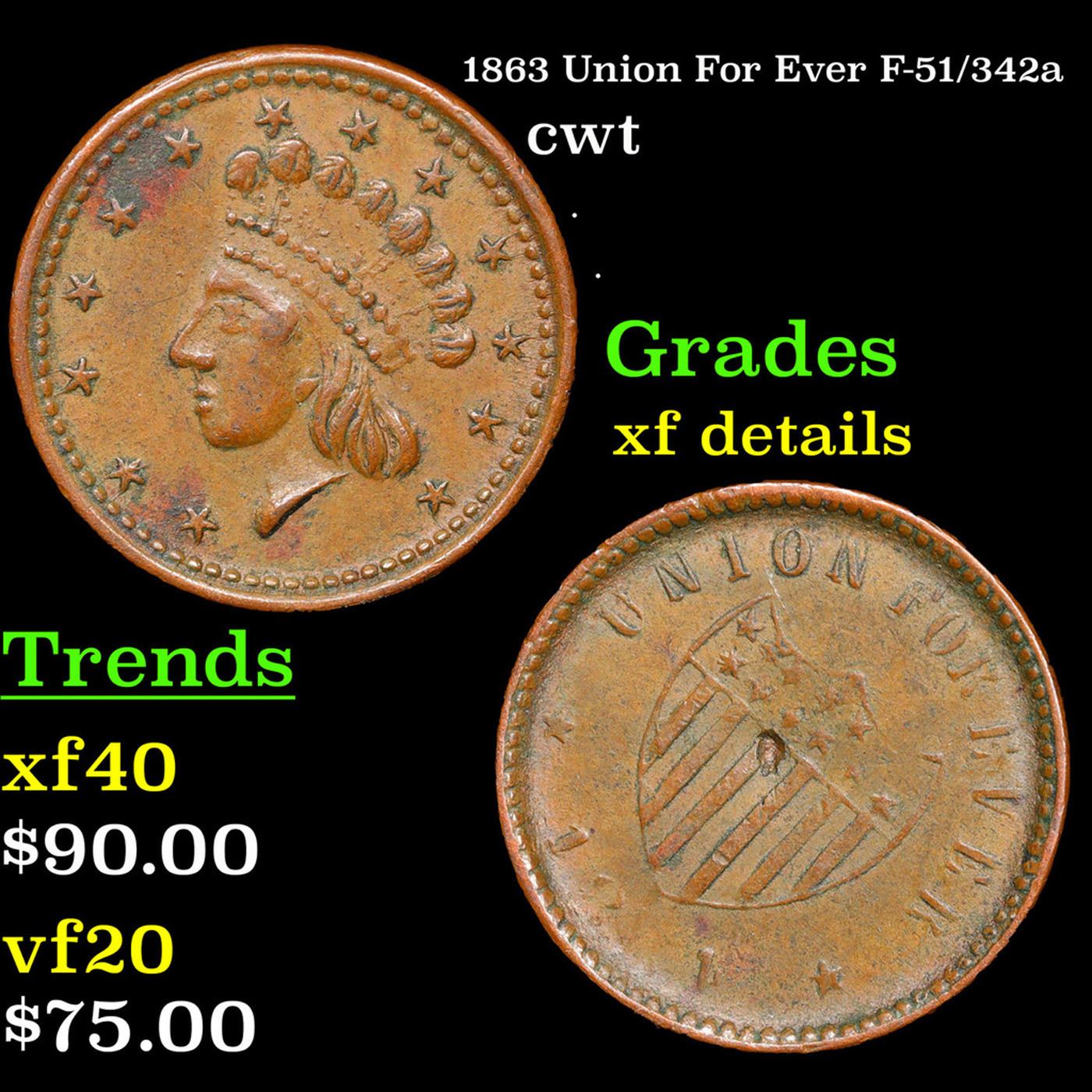 1863 Union For Ever F-51/342a Civil War Token 1c Grades xf details.