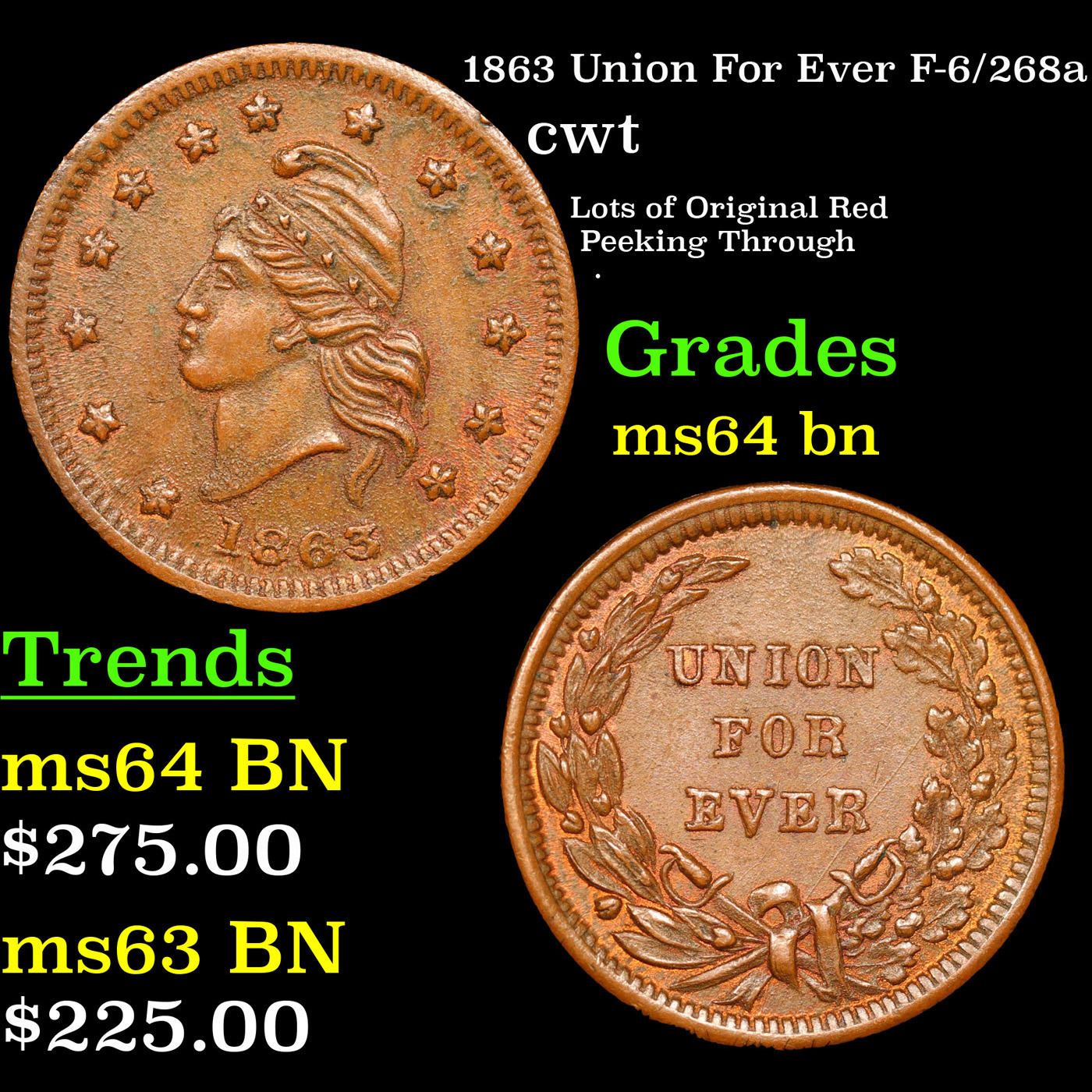 1863 Union For Ever F-6/268a Civil War Token 1c Grades Choice Unc BN.