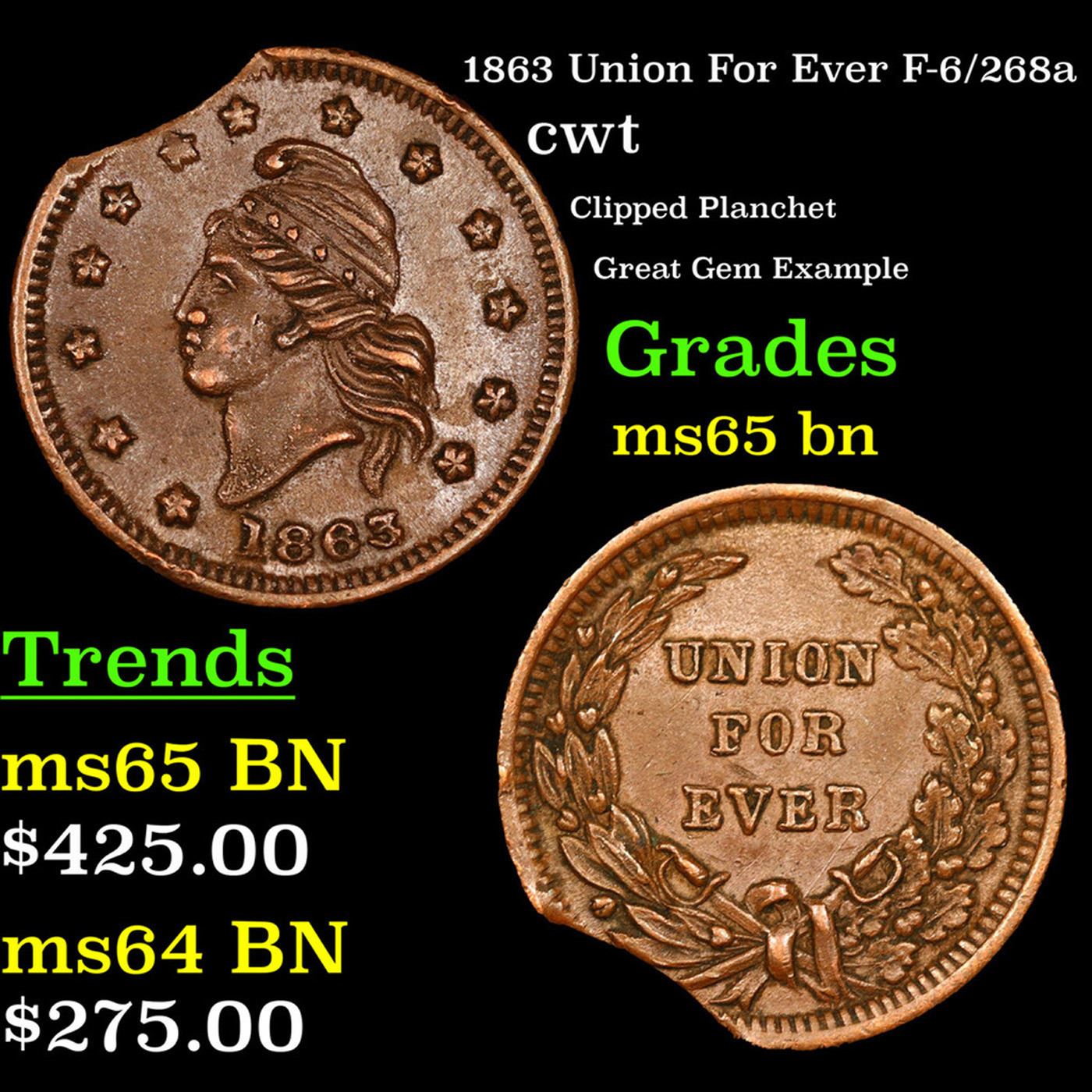1863 Union For Ever F-6/268a Civil War Token 1c Grades GEM Unc BN.