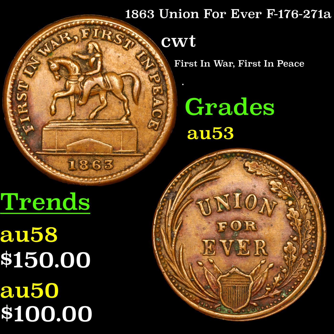 1863 Union For Ever F-176-271a Civil War Token 1c Grades Select AU.