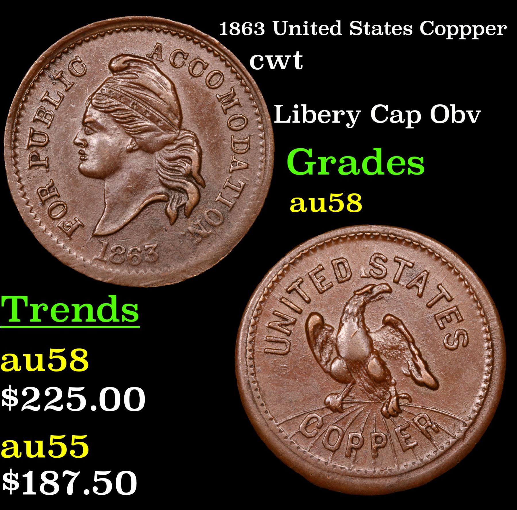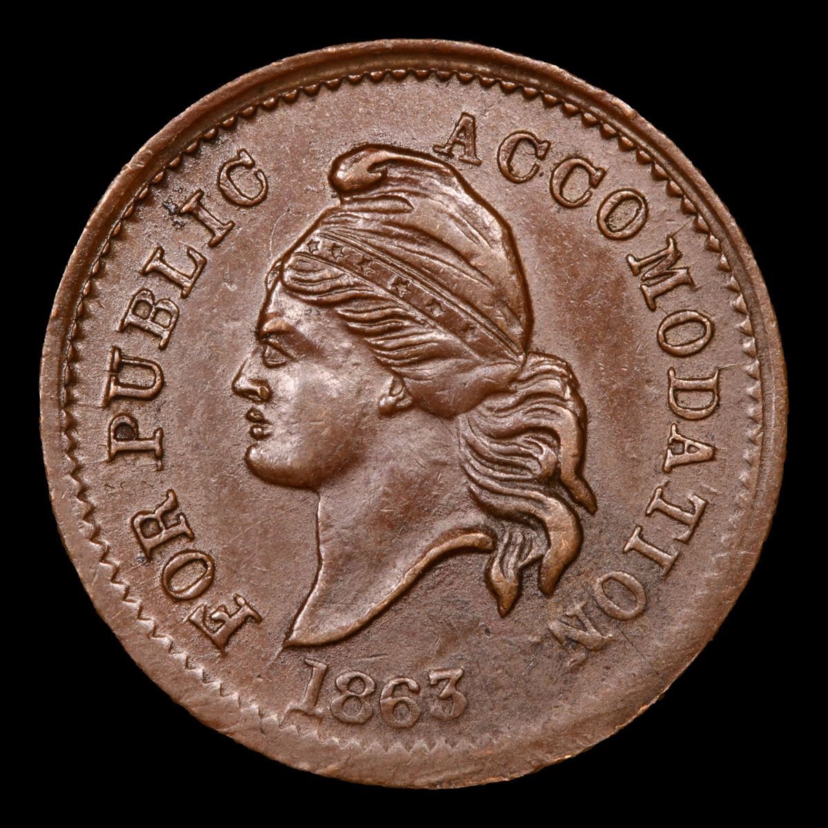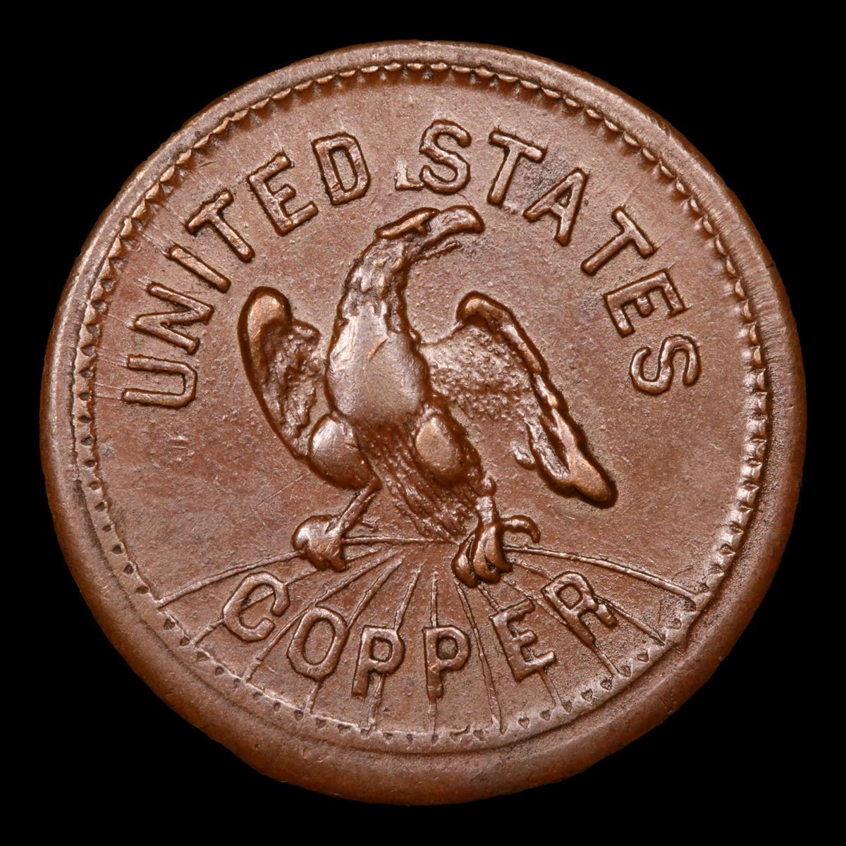 1863 United States Coppper Libery Cap Obv . Civil War Token 1c Grades Choice AU/BU Slider.