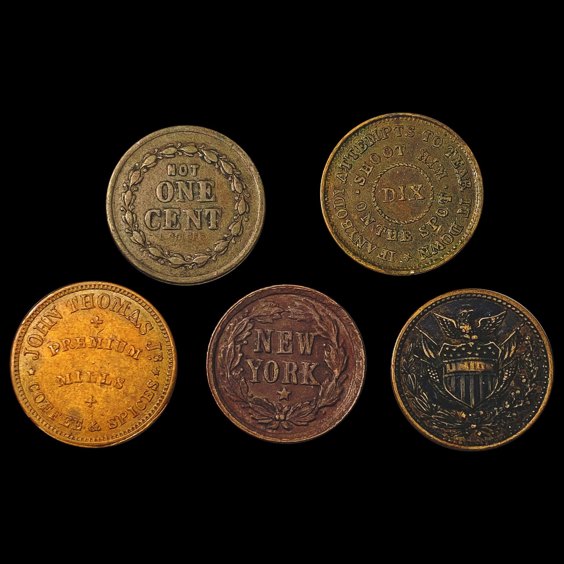 1863 Varied Civil War Tokens Lot [5 Coins] HIGH GRADE