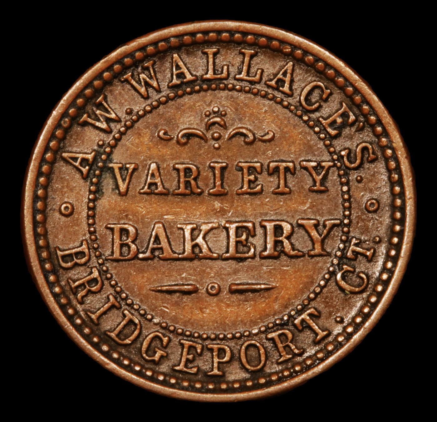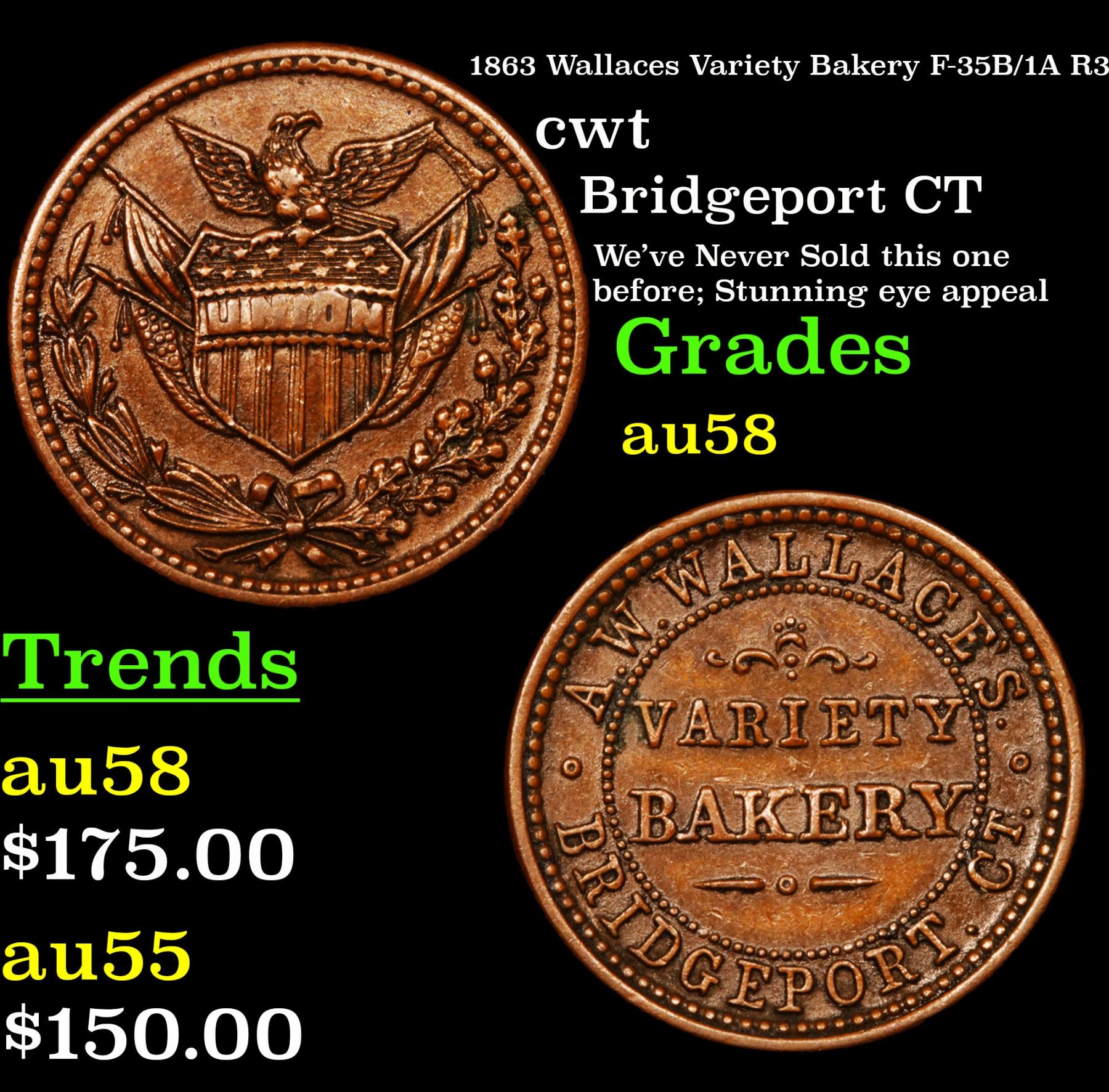 1863 Wallaces Variety Bakery F-35B/1A R3 Civil War Token 1c Grades Choice AU/BU Slider.