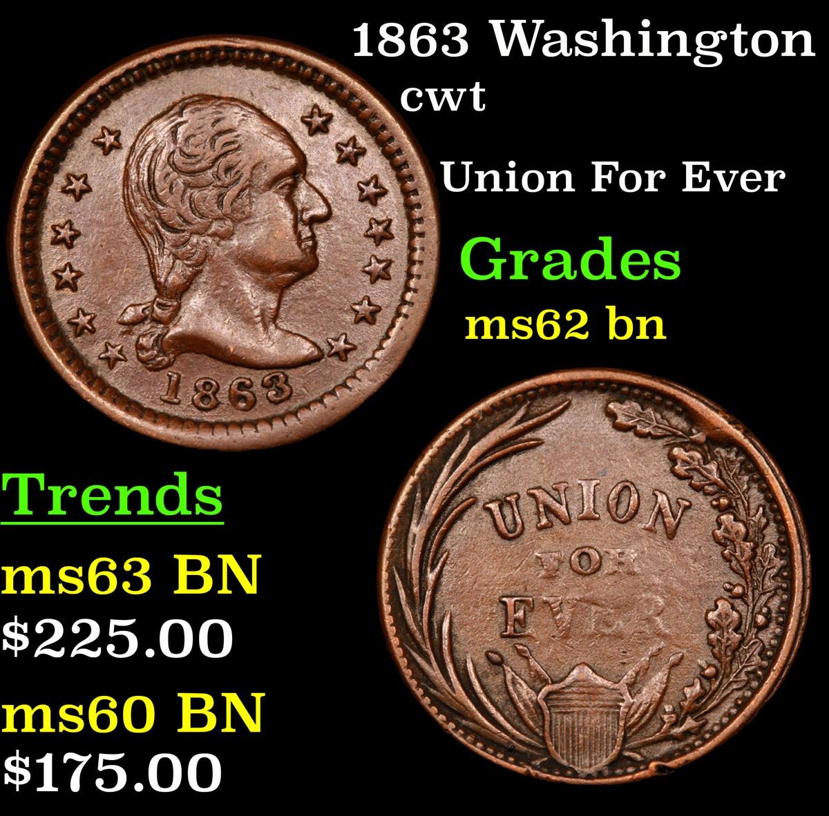 1863 Washington Civil War Token 1c Grades Select Unc BN.