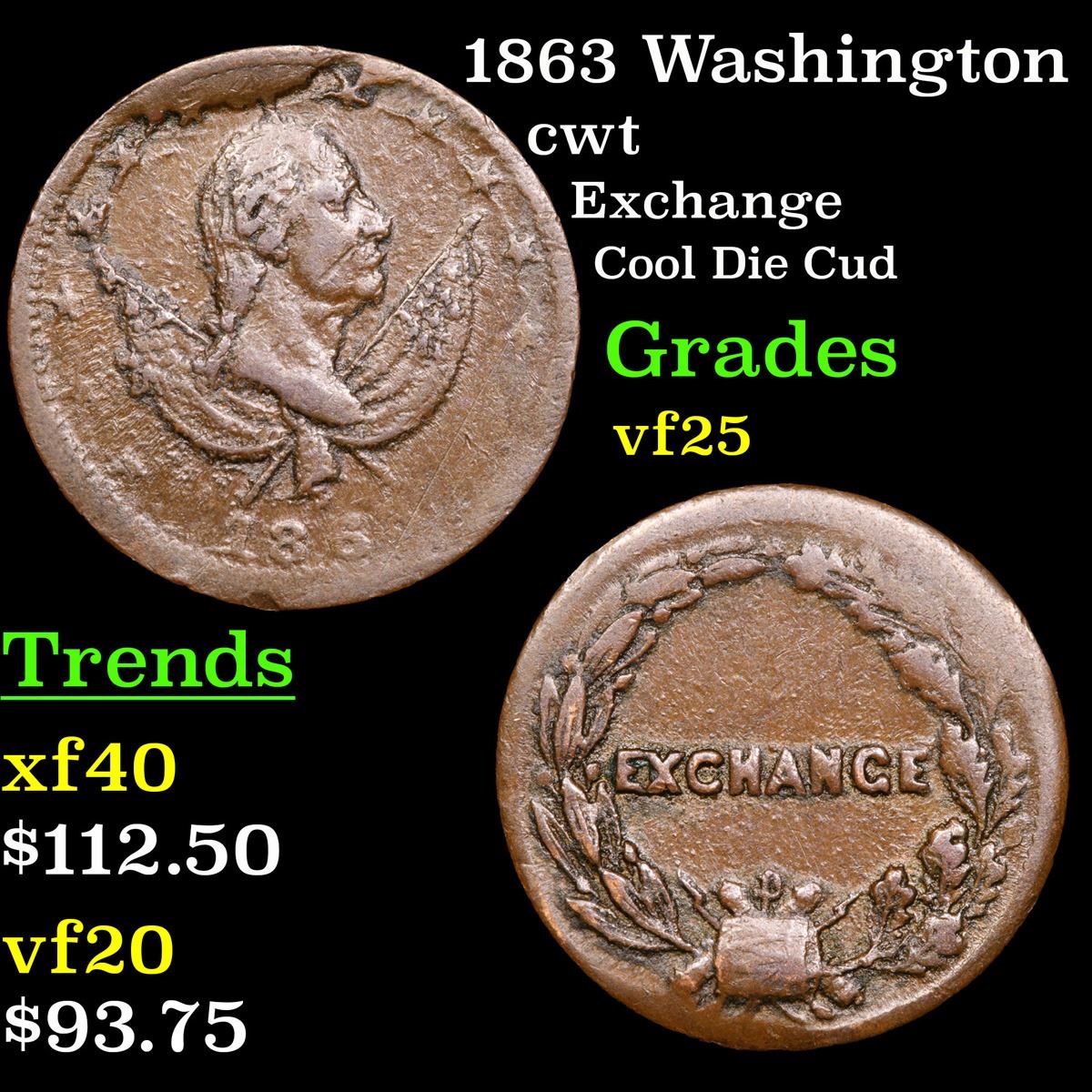 1863 Washington Exchange Cool Die Cud Civil War Token 1c Grades vf+.