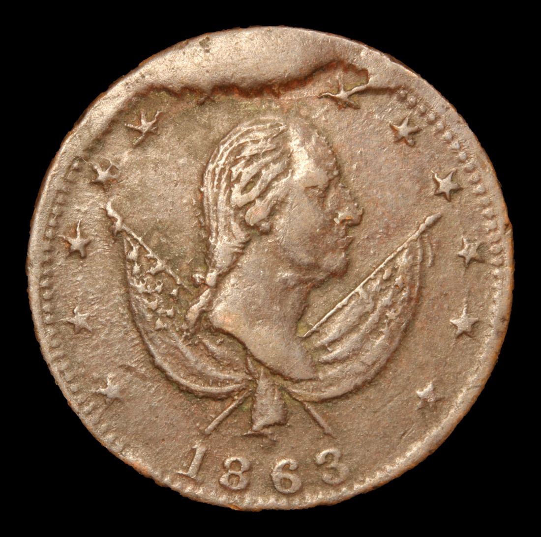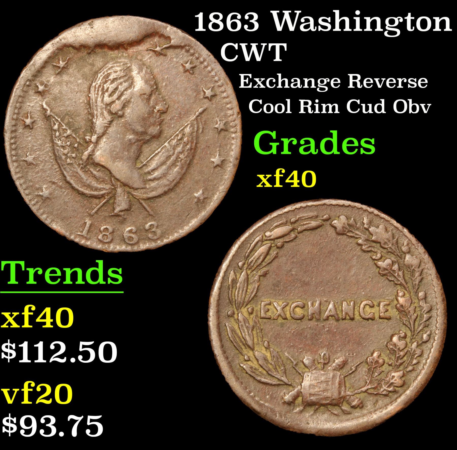 1863 Washington Civil War Token 1c Grades xf. Exchange Reverse; Cool Rim Cud Obv